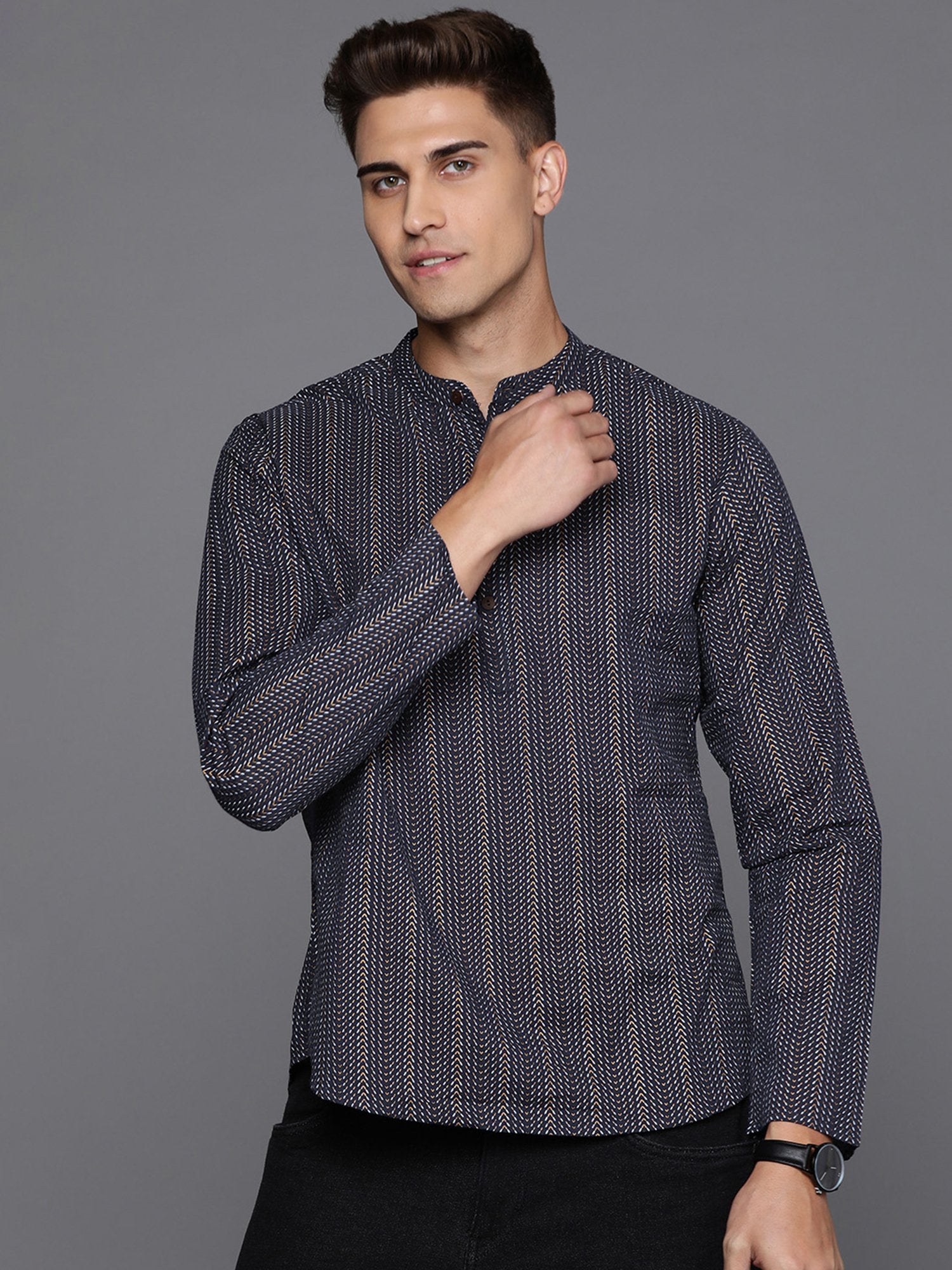 Indo Era Navy Blue Herringbone Cotton Straight Kurtas