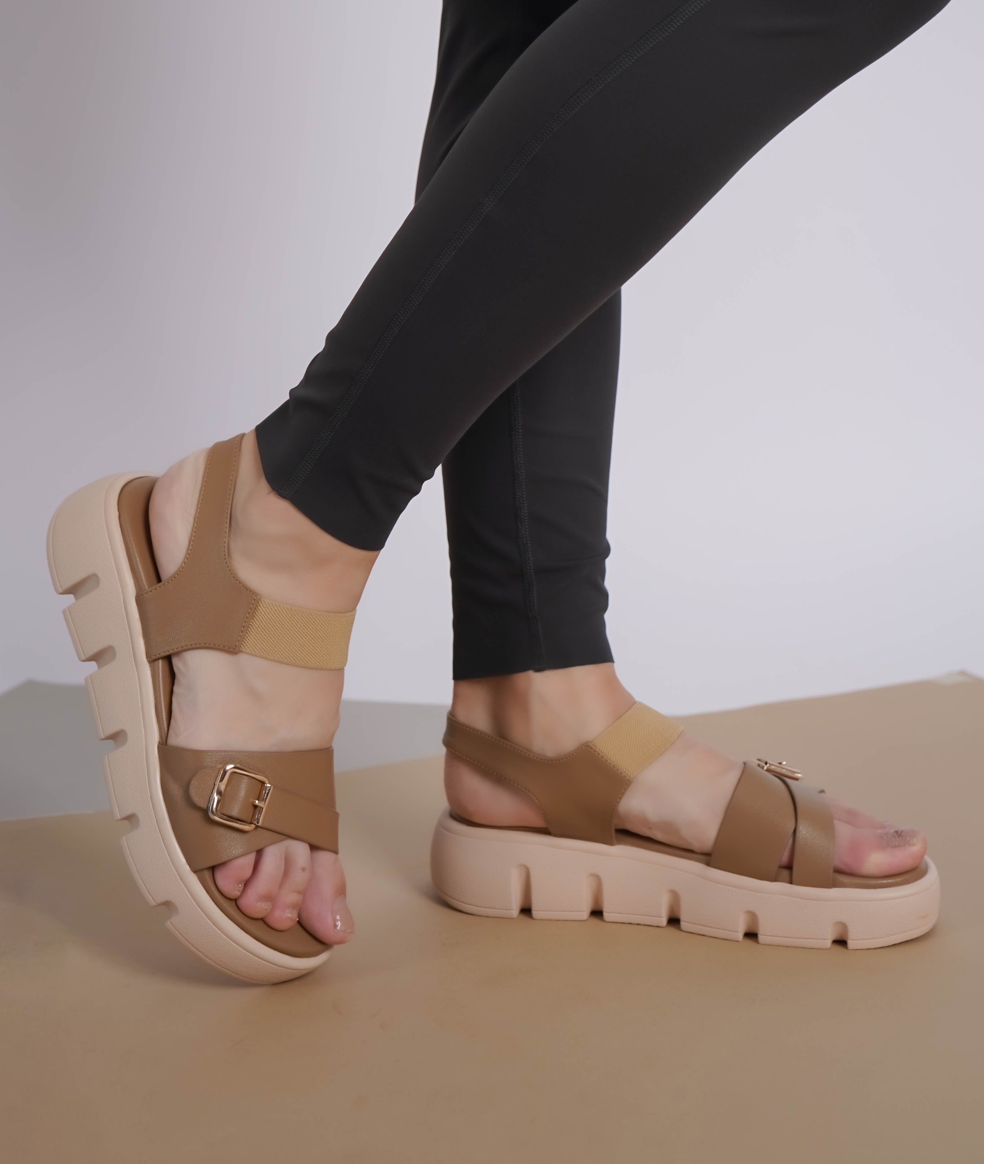 صندل كاجوال أنيق بكعب عالٍ ومنصة مقاس 1 بوصة