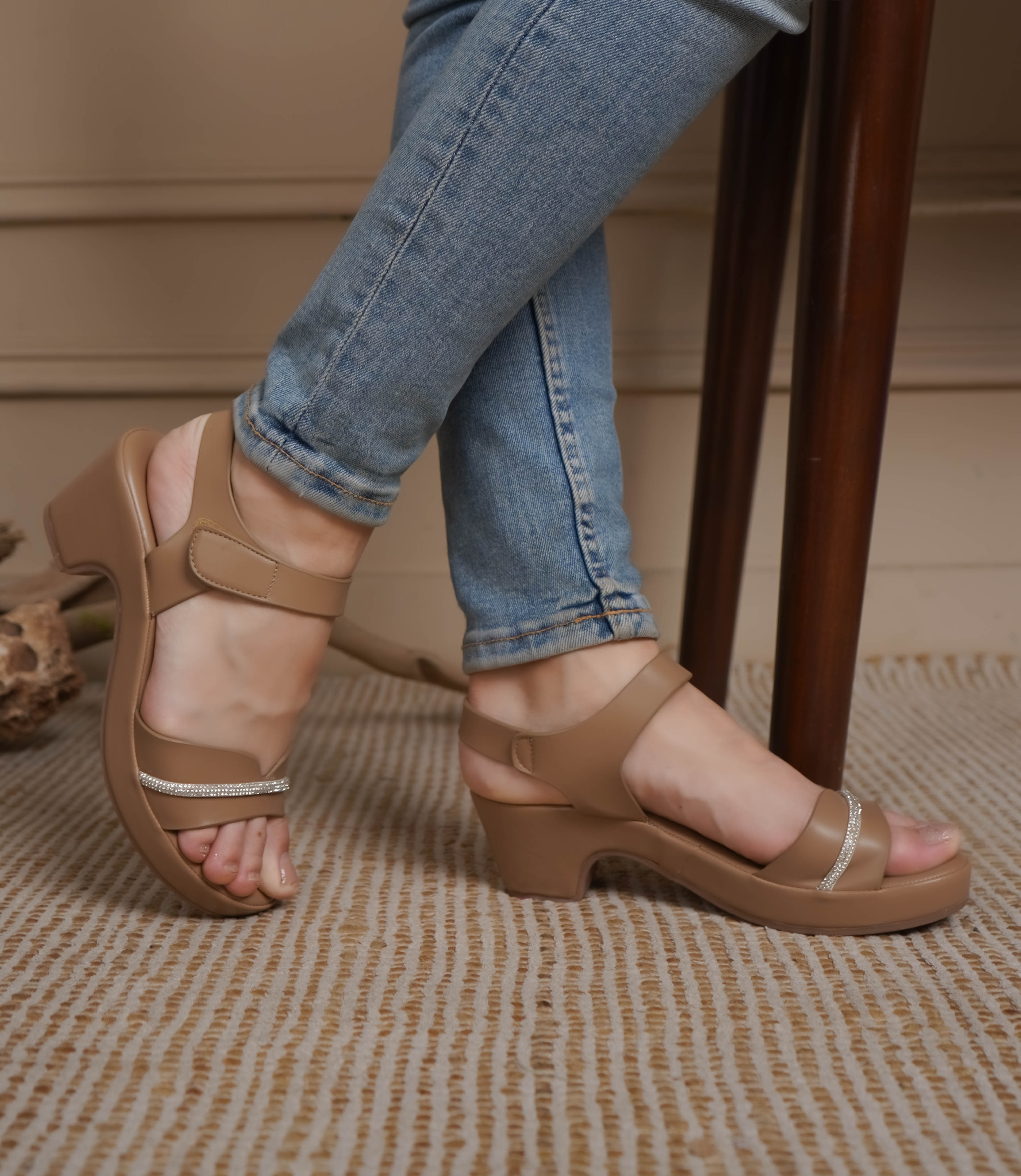صندل أنيق وعصري بكعب عريض بارتفاع 2 بوصة، مزود بحلقة للكاحل ومقدمة مستديرة.