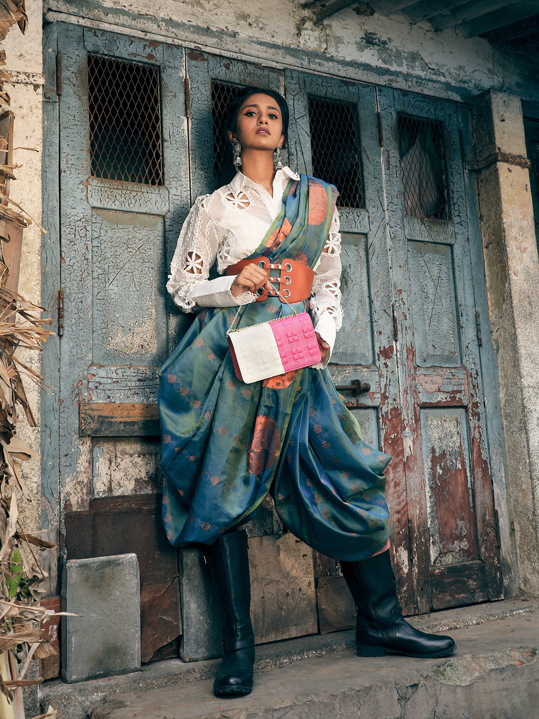 حقيبة كتف بغطاء متباين - أبيض ووردي