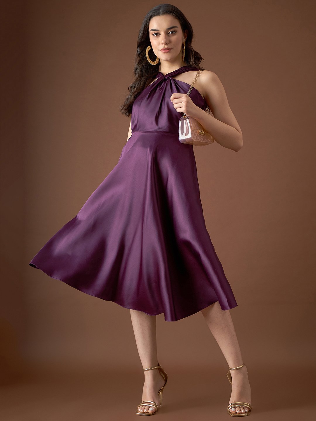 فيبريك: ساتان | اللون: أرجواني | العمل: سادة | الرقبة: رقبة بدون أكمام