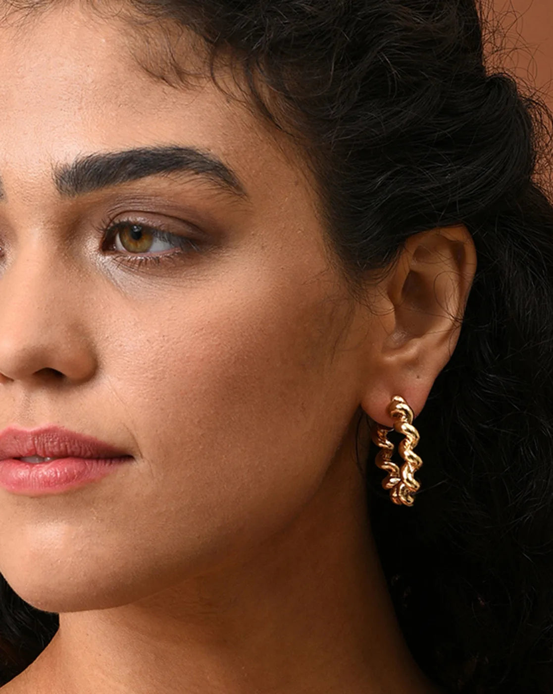 قرط أذن دائري مطلي بالذهب بتصميم مميز