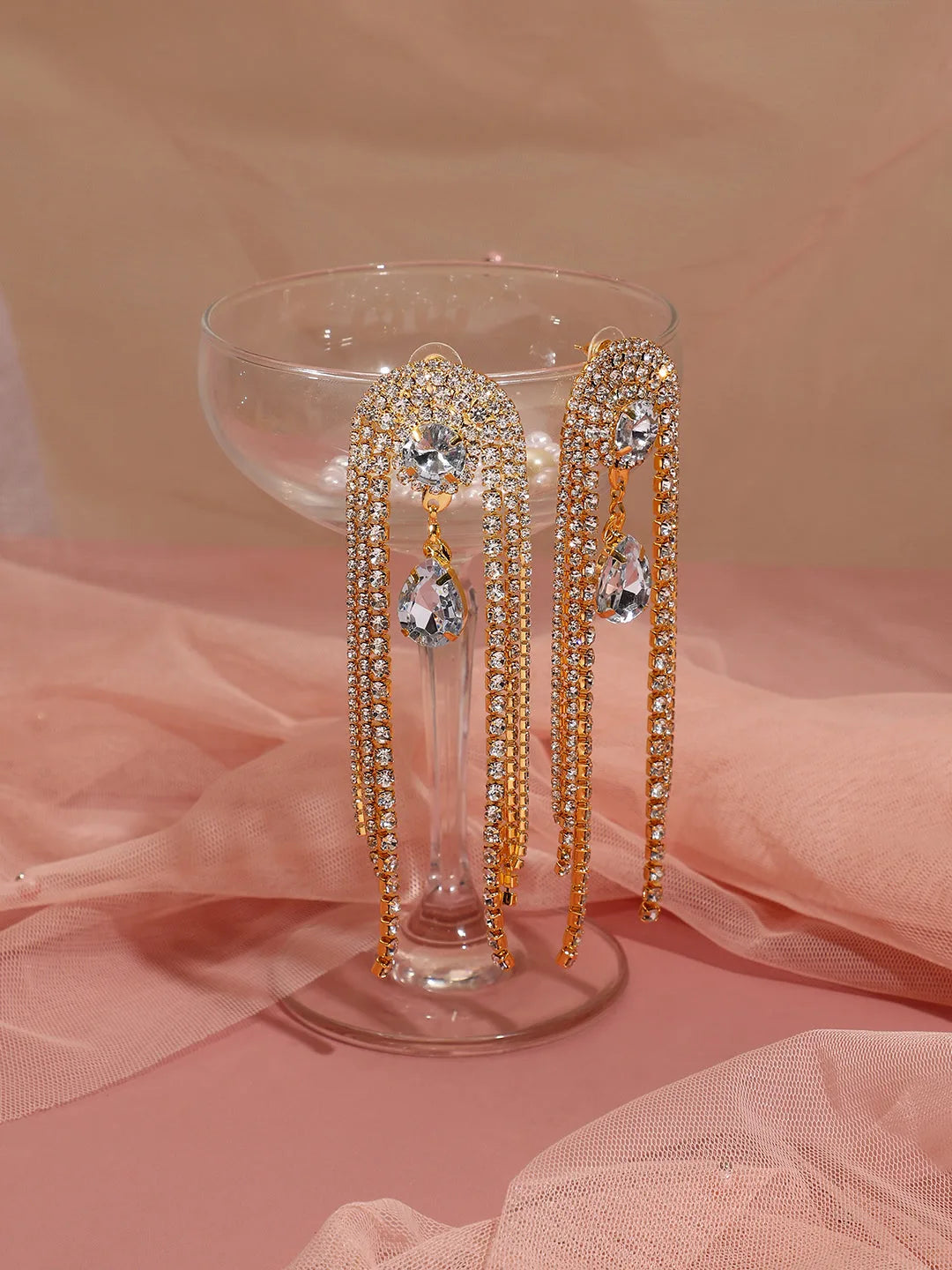 SOHI - أقراط أذن مطلية بالذهب مرصعة بأحجار مصممة للحفلات للنساء