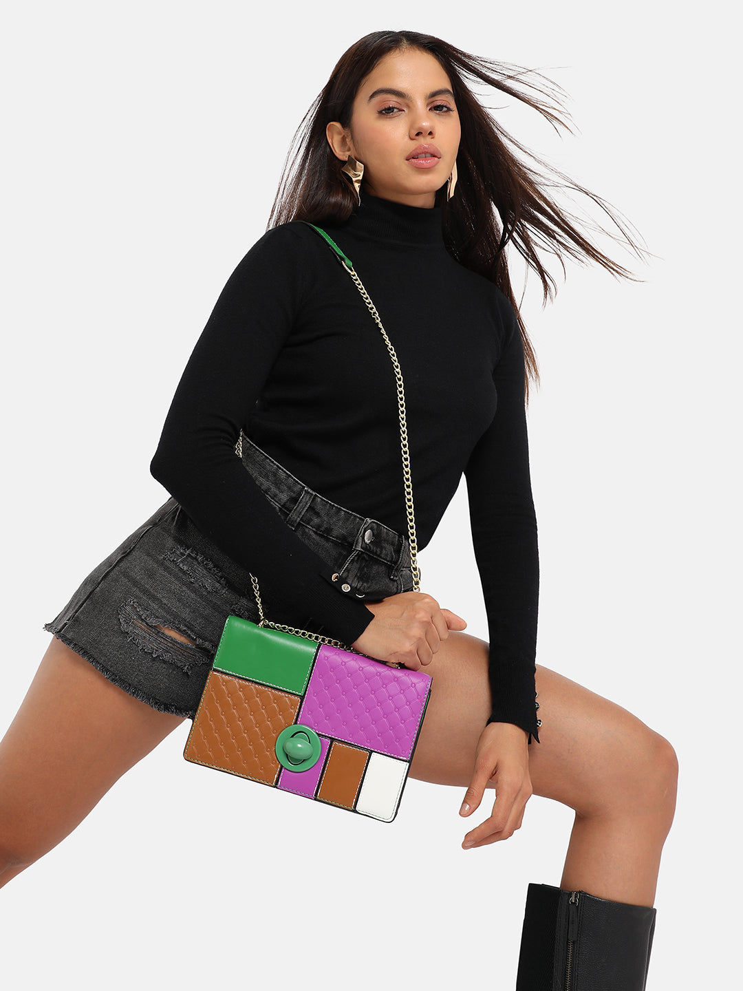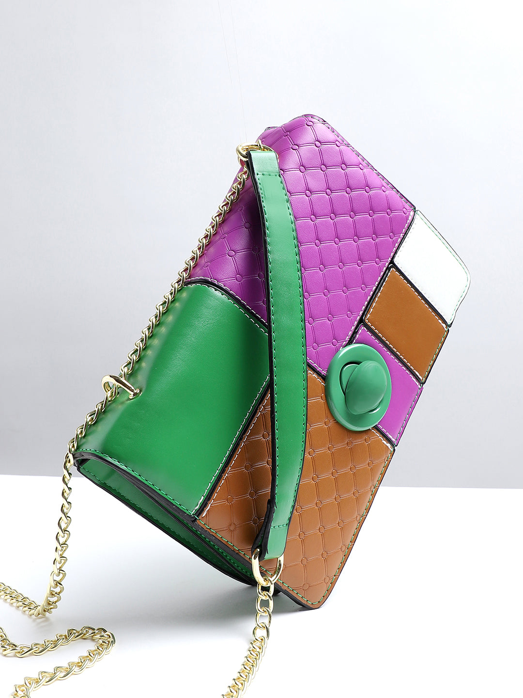 حقيبة كتف بلونين متناقضين - بنفسجي وبني