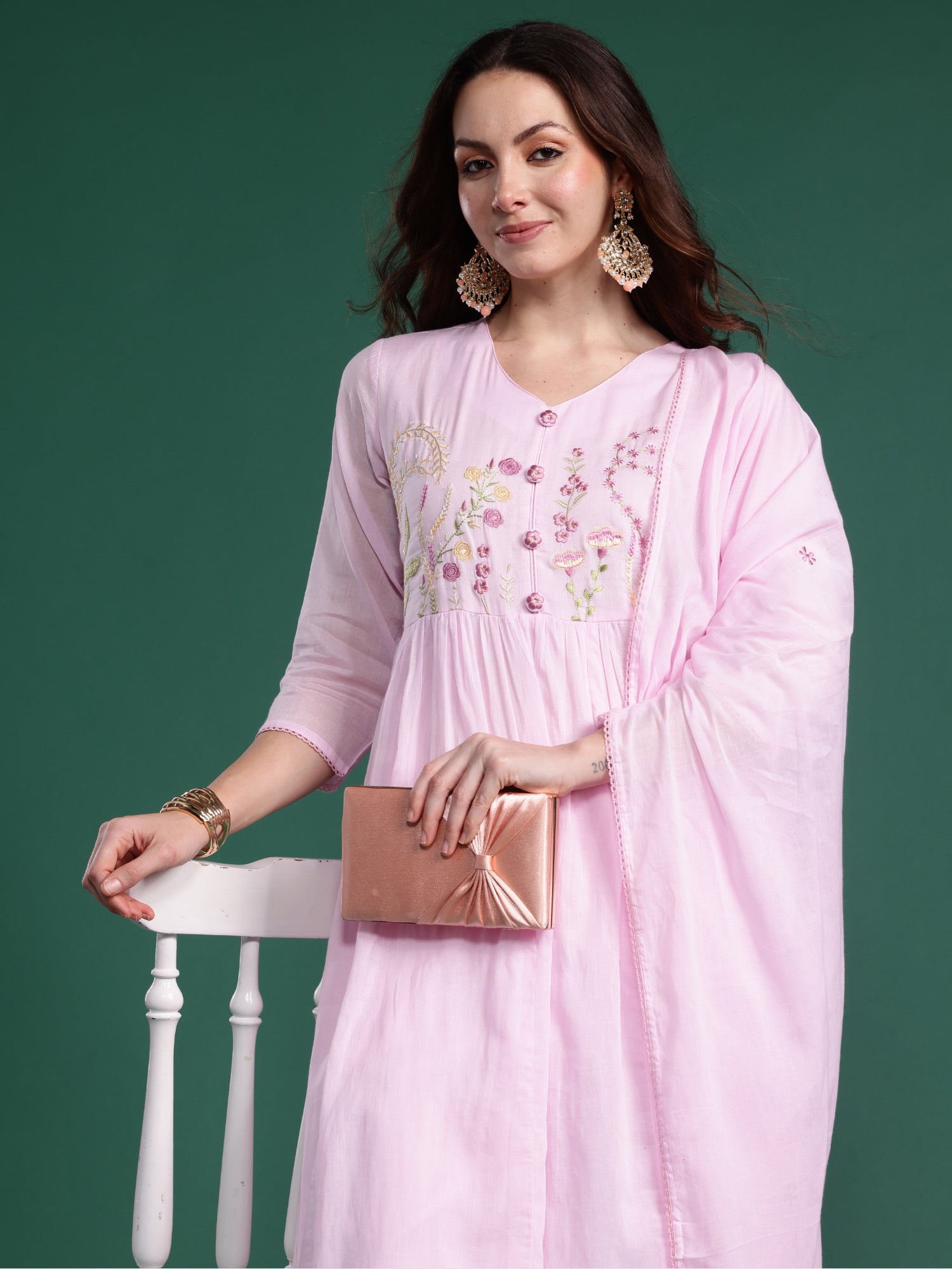طقم كورتة وردية مطرزة من إندو إيرا بتصميم A-Line مع دوباتا