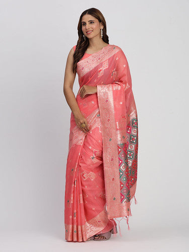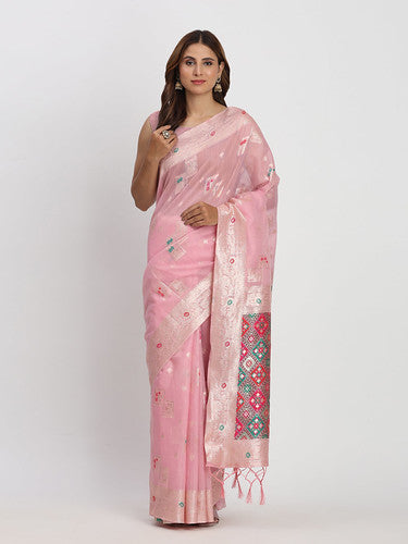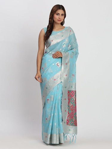 Wrapped in sunshine, this Sea Green linen saree brings elegance and ease together. With its light touch and colorful woven charm, it’s perfect for every woman who celebrates simplicity with style.