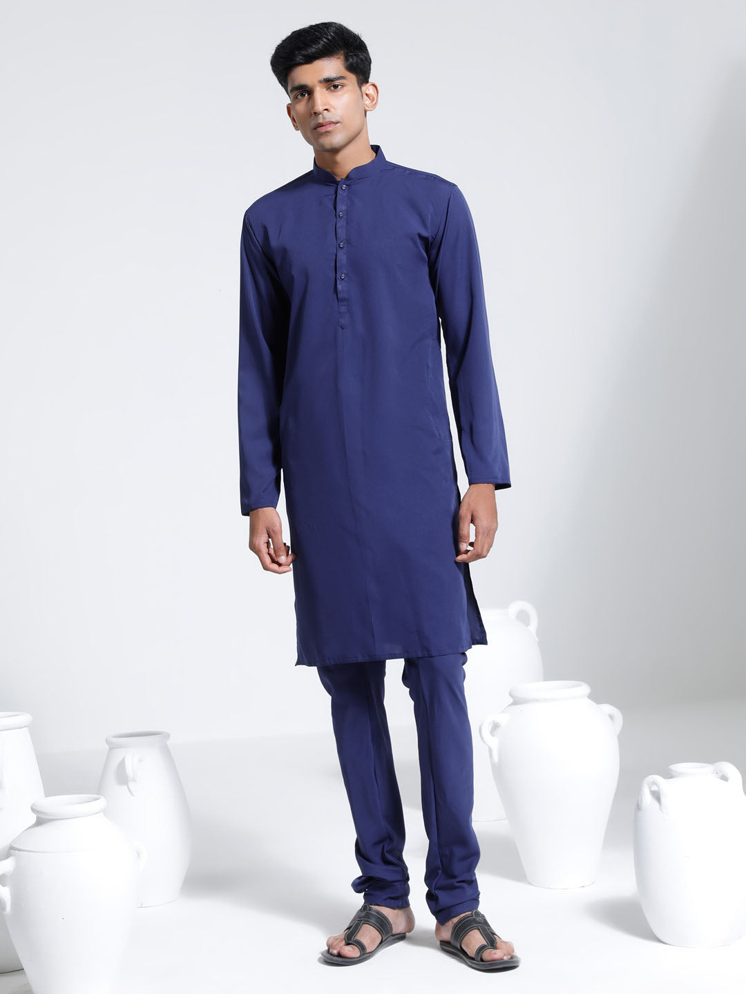 قميص كورتا من الكريب بطول الركبة، بياقة ماندرين، وأكمام طويلة، وإغلاق بأزرار، وحاشية مستقيمة وفتحات جانبية. يأتي مع بيجامة شوريدار سادة، مع إغلاق برباط.