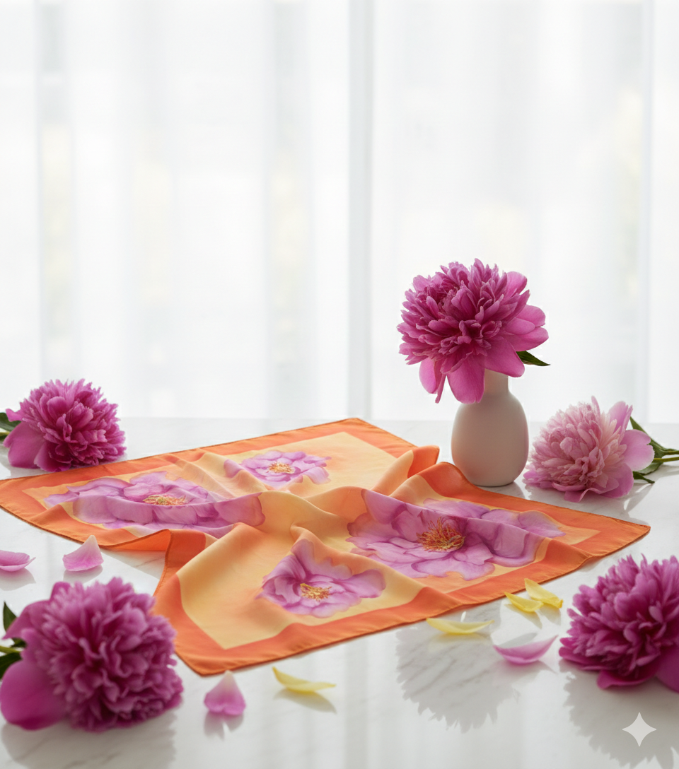 Hand Painted Scarf, thank you card, complimentary scarf pin
