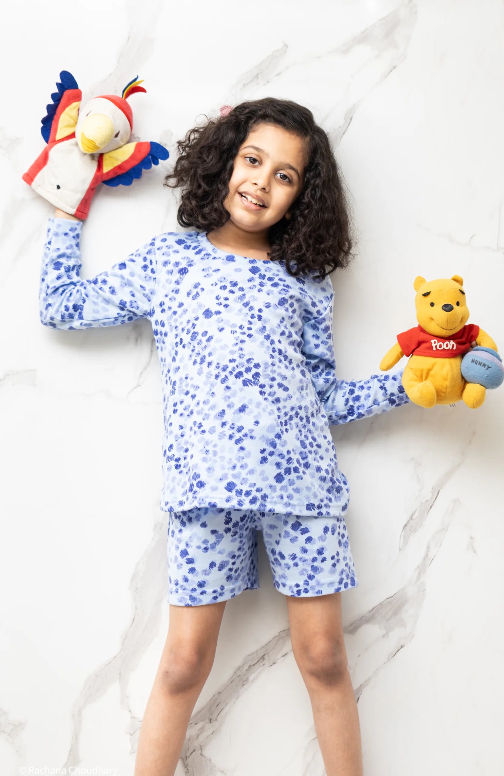 القماش: مزيج من القطن | اللون: أزرق AOP(SET) | تحتوي العبوة على: 4 | العمل/النمط: جلد النمر | خط العنق: رقبة دائرية