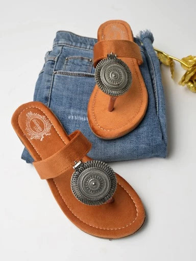 حذاء مسطح مزين بزخارف عرقية يجعلك ترقص. جزء علوي مصمم بمجوهرات عرقية مزخرفة وينتهي بنعل مريح للغاية.