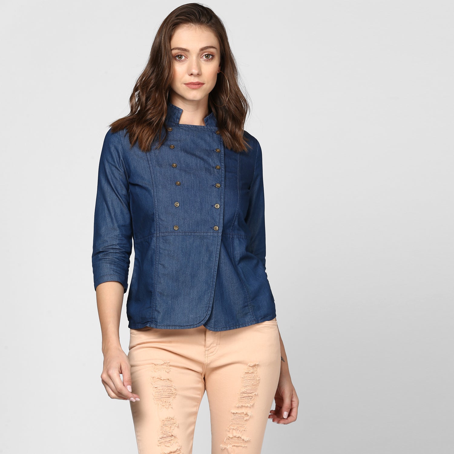 الكم: ثلاثة أرباع الكم | النقشة: سادة | يُغسل في الغسالة | جينز