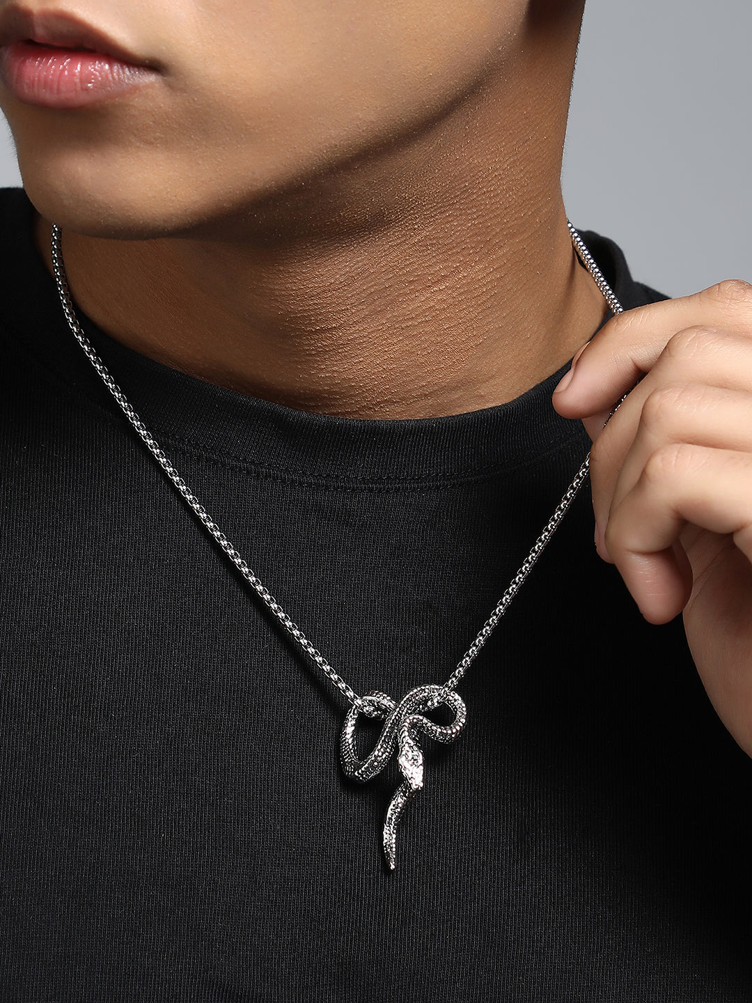 قلادة على شكل ثعبان - فضي معدني