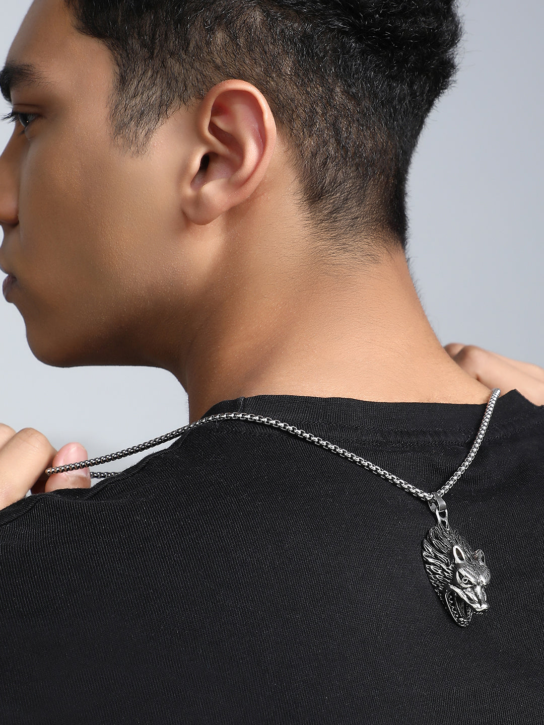 قلادة الذئب - فضي معدني