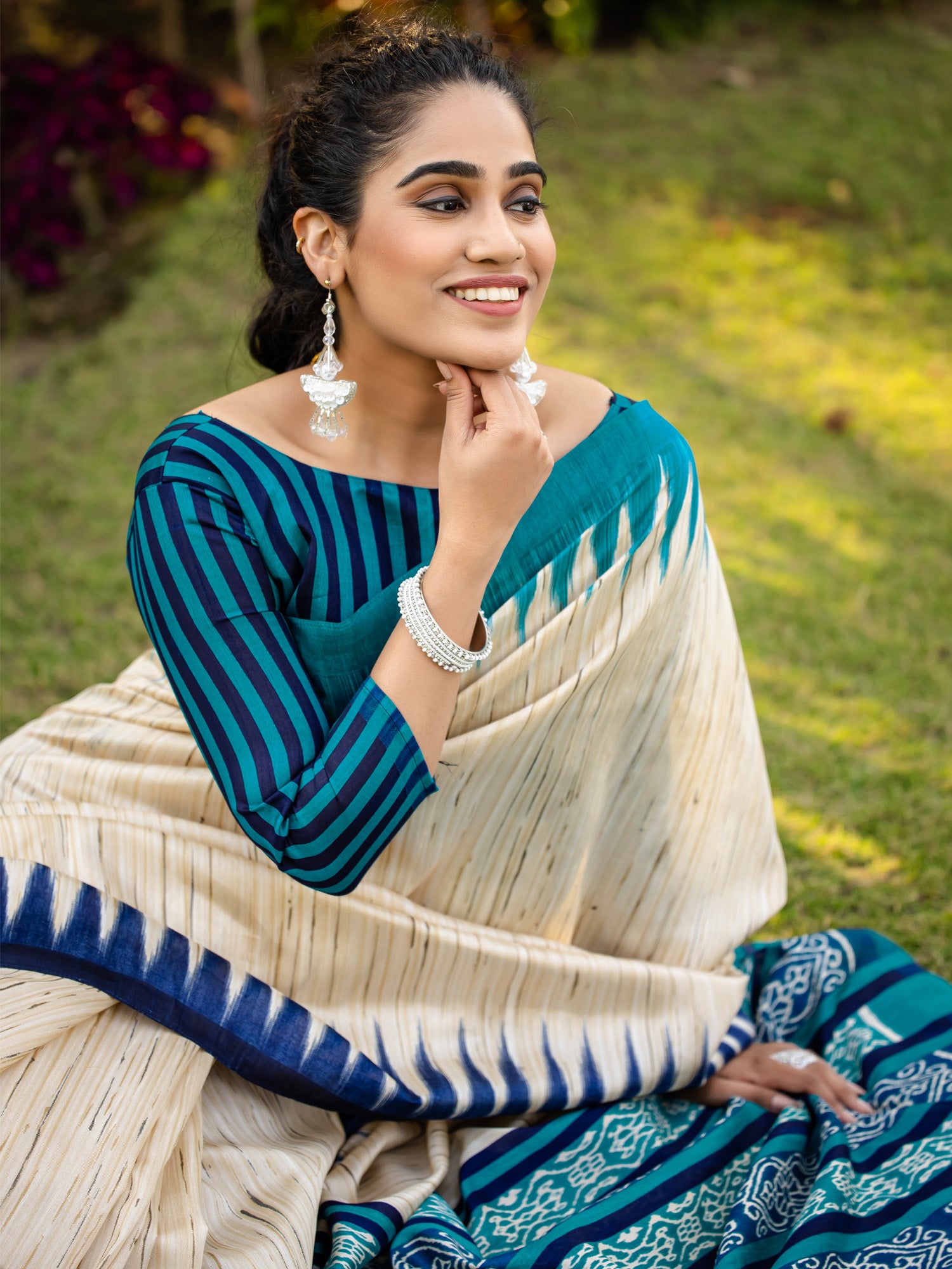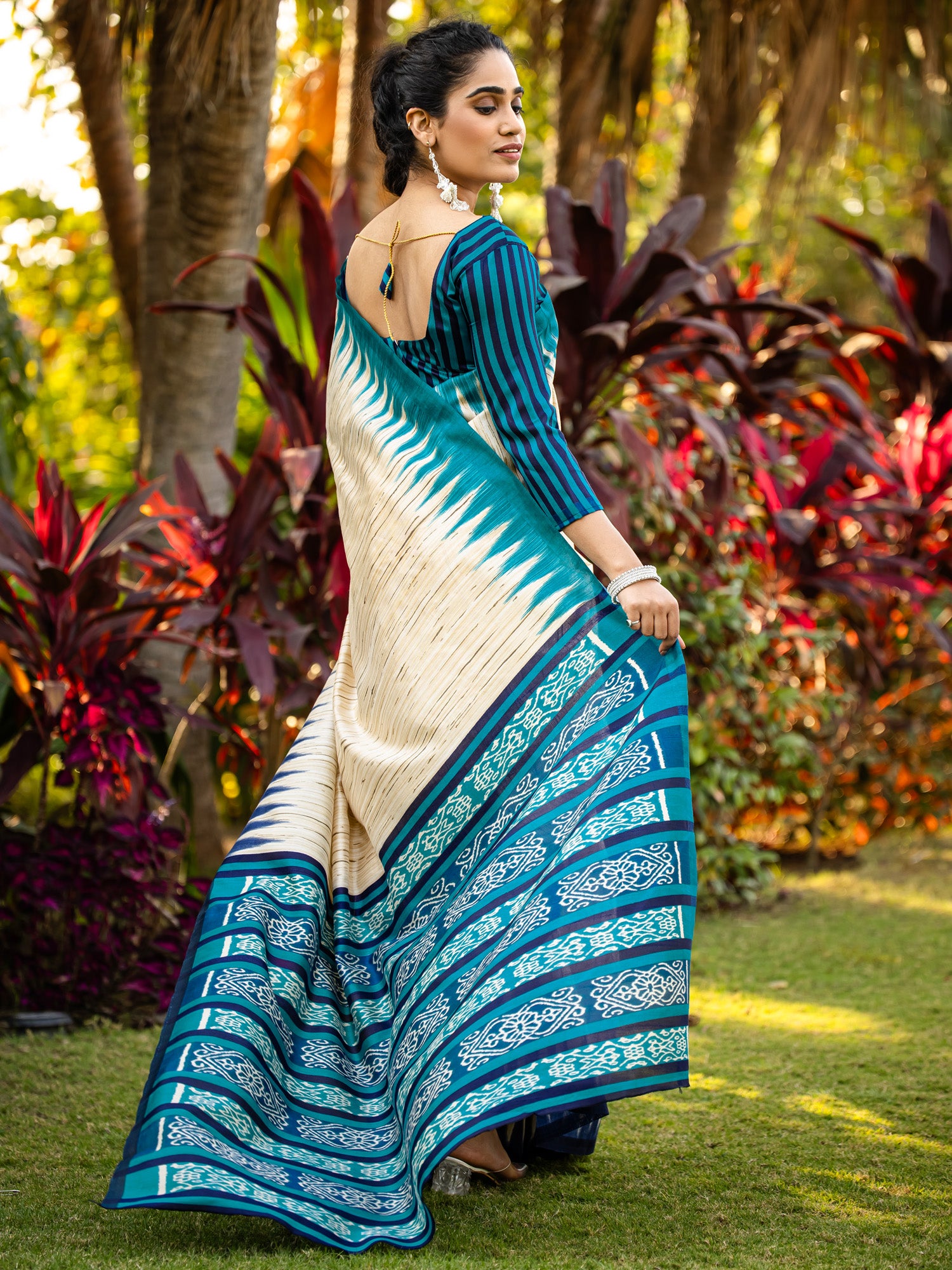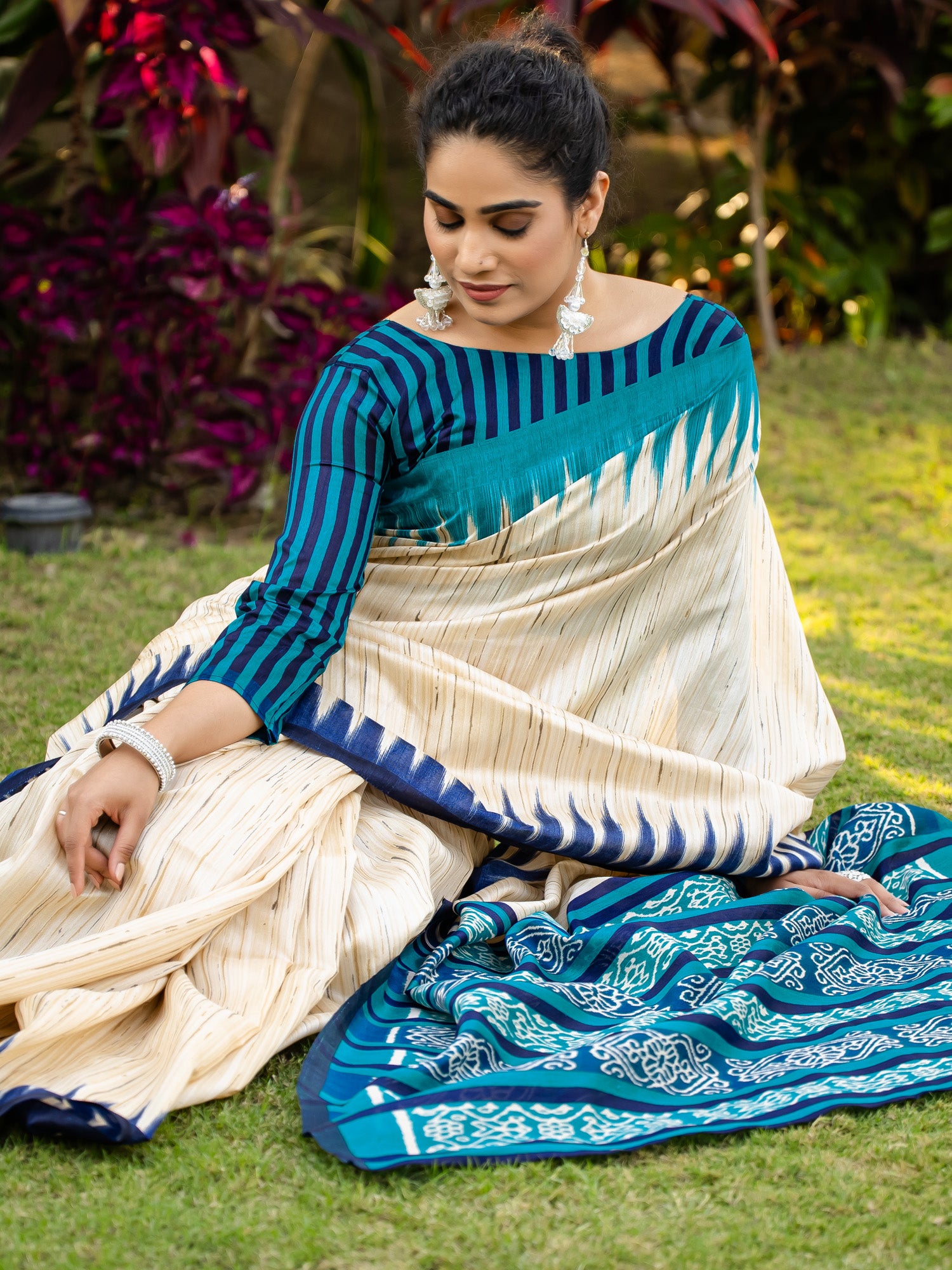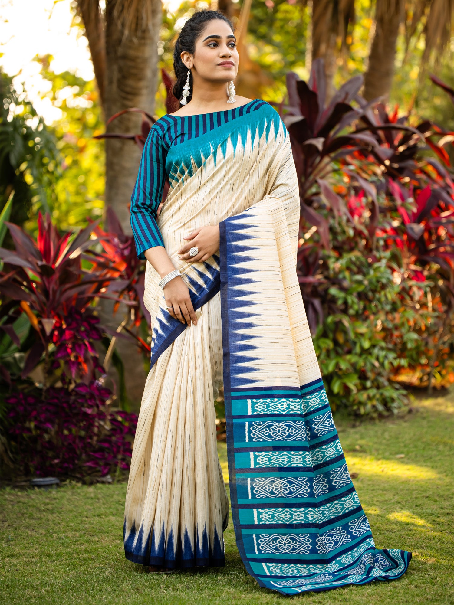 هذا الساري من ساري مول مصنوع من حرير بهجالبوري، ولونه بيج. تأتي ساري مول مع قطعة قماش للبلوزة، يمكن تفصيلها حسب ذوقك. صُنع هذا الساري على أيدي حرفيين مهرة دون المساومة على جودته. بتصميمه الجميل وقماشه الفاخر، سيحظى هذا الساري بإعجاب الجميع. مقاس الساري 5.5 متر، ومقاس البلوزة 0.8 متر، مقاس حر.