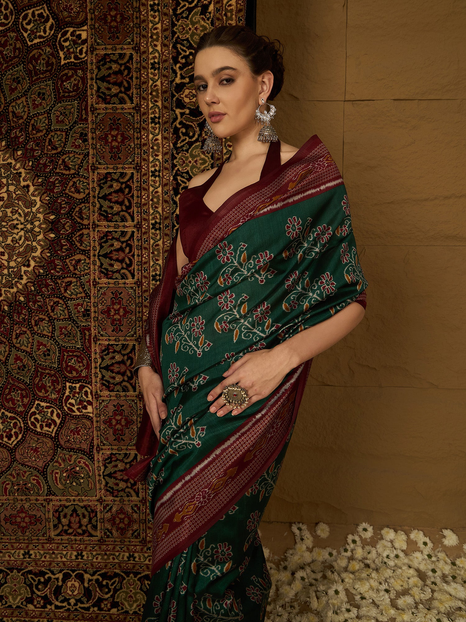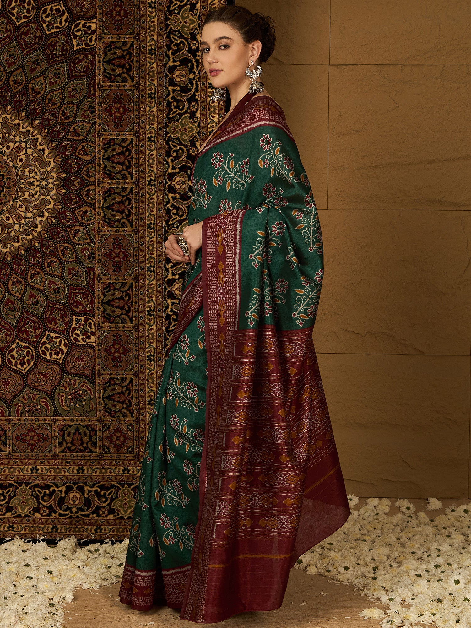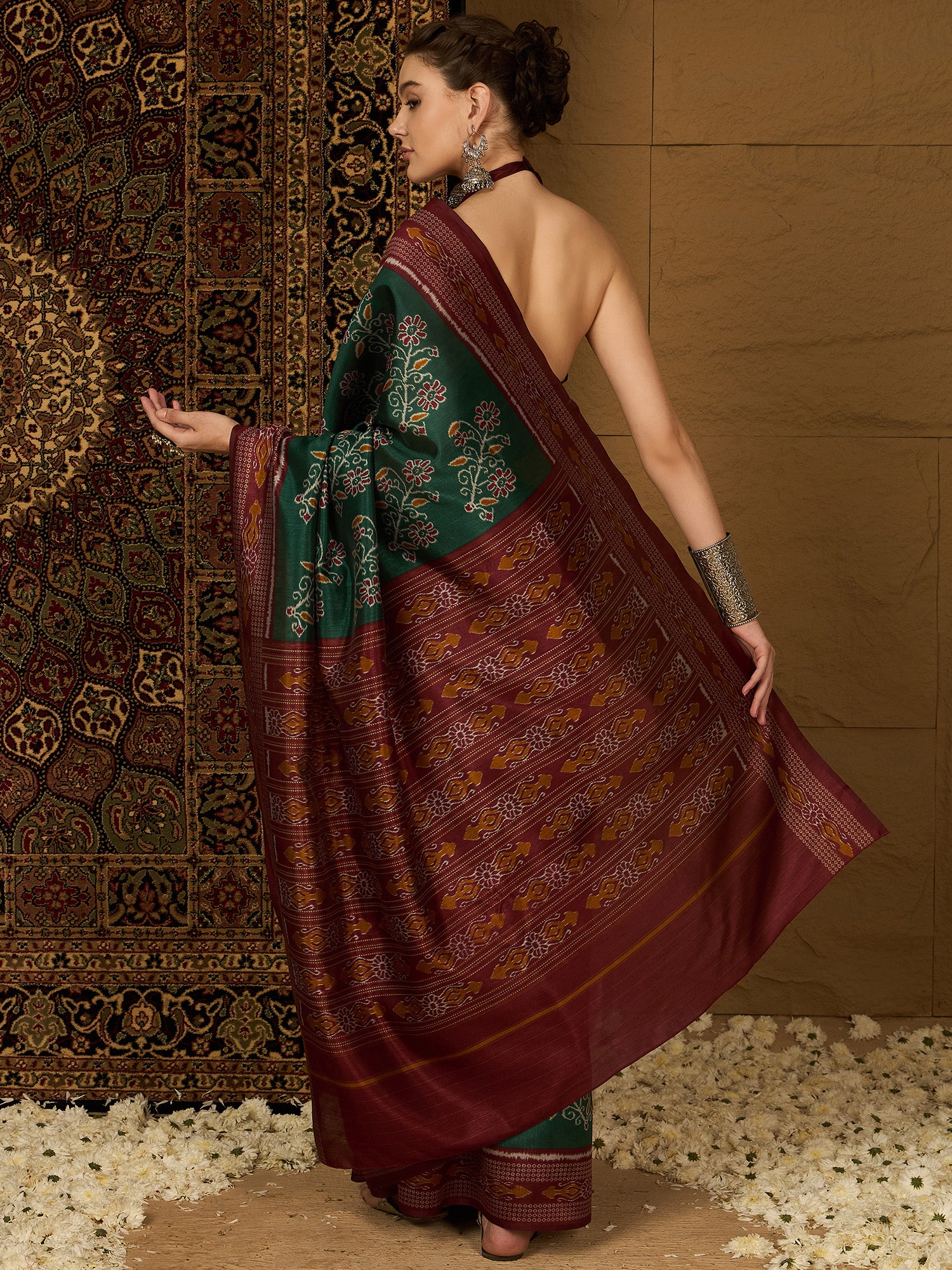 هذا الساري من ساري مول مصنوع من حرير بهجالبوري، ولونه أخضر. تأتي ساري مول مع قطعة قماش للبلوزة، يمكن تفصيلها حسب ذوقك. صُنع هذا الساري على أيدي حرفيين مهرة دون المساومة على جودته. بتصميمه الجميل وقماشه الفاخر، سيحظى هذا الساري بإعجاب الجميع. مقاس الساري 5.5 متر، ومقاس البلوزة 0.8 متر، وهو مقاس حر.