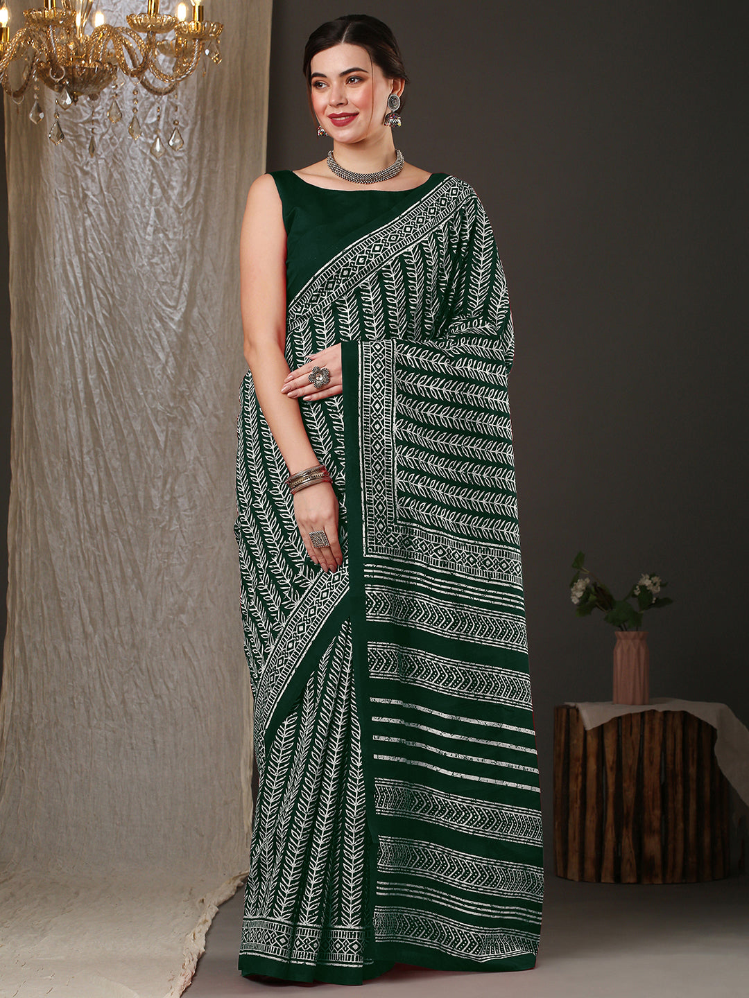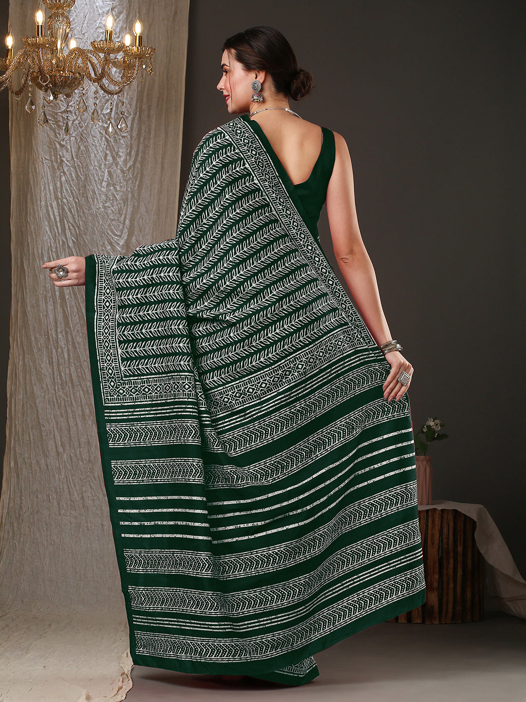 هذا الساري من ساري مول مصنوع من حرير بهجالبوري، ولونه أخضر. تأتي ساري ساري مول مع قطعة قماش للبلوزة، يمكن تفصيلها حسب ذوقك. صُنع هذا الساري على أيدي حرفيين مهرة دون المساومة على جودته. بتصميمه الجميل وقماشه الفاخر، سيحظى هذا الساري بإعجاب الجميع. مقاس الساري 5.5 متر، ومقاس البلوزة 0.8 متر، وهو مقاس حر.