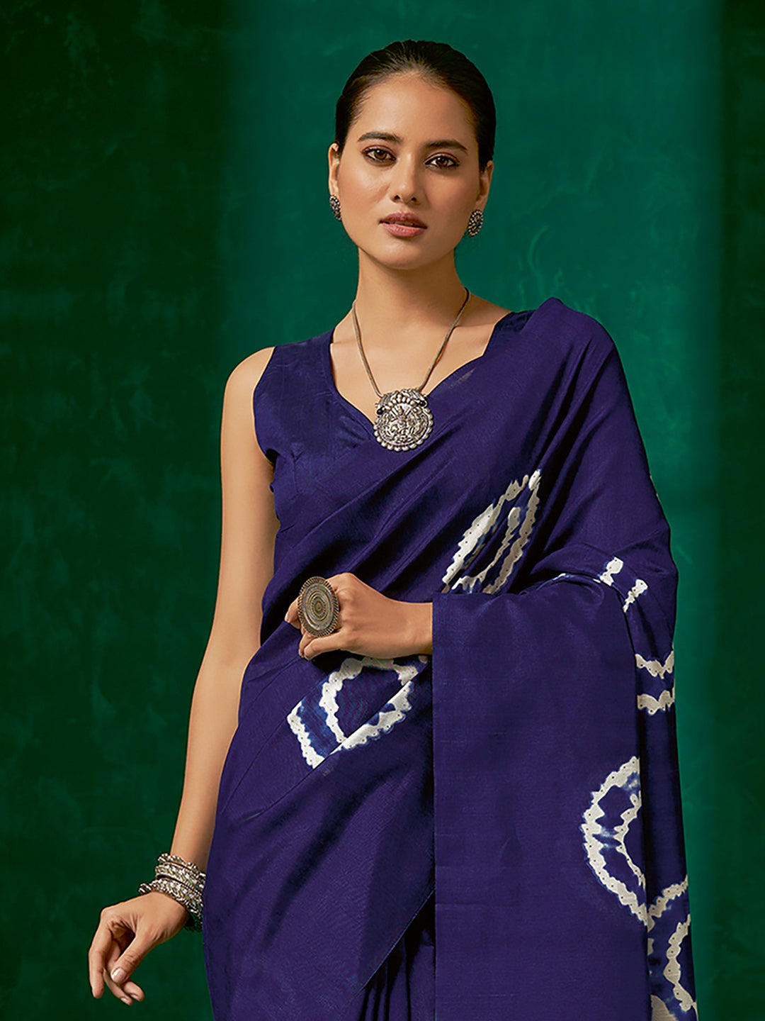 هذا الساري من دار ساري مول مصنوع من حرير بهجالبوري، ولونه بنفسجي. تأتي ساري ساري مول العرقية مع قطعة بلوزة يمكن تفصيلها حسب ذوقك. صُنع هذا الساري على أيدي حرفيين مهرة دون المساومة على جودته. بتصميمه الجميل وقماشه الفاخر، سيحظى هذا الساري بإعجاب الجميع. مقاس الساري 5.5 متر، ومقاس البلوزة 0.8 متر، وهو مقاس حر.