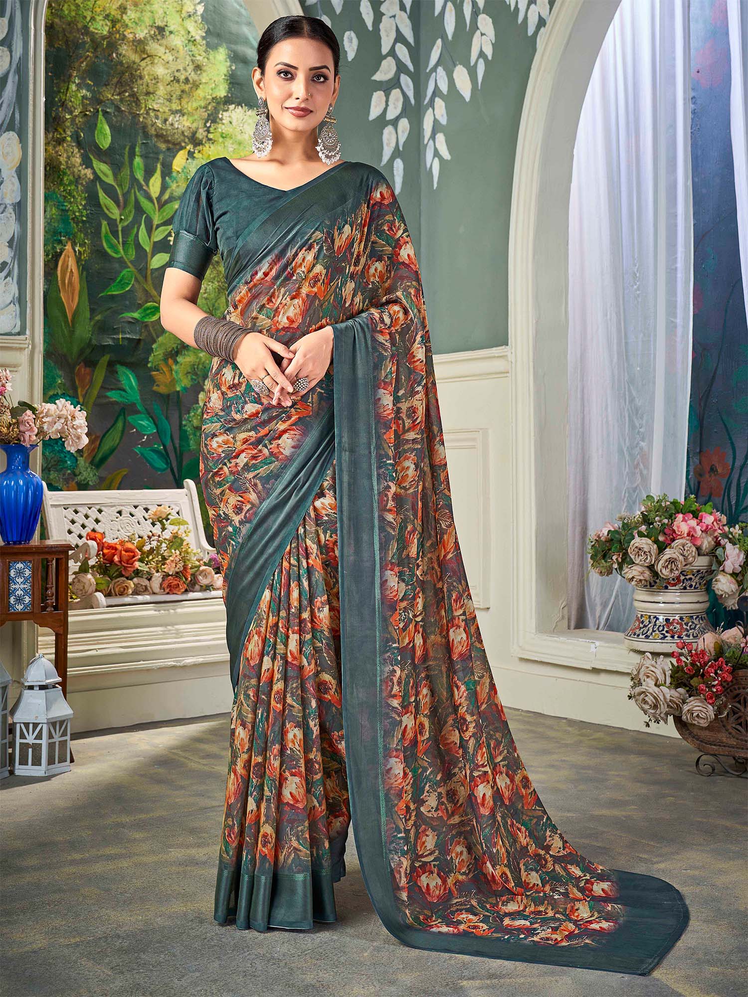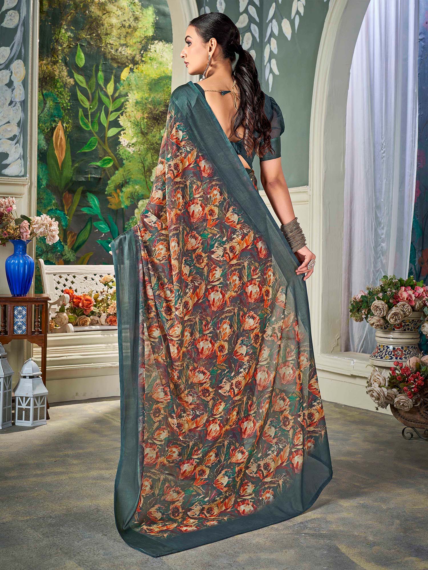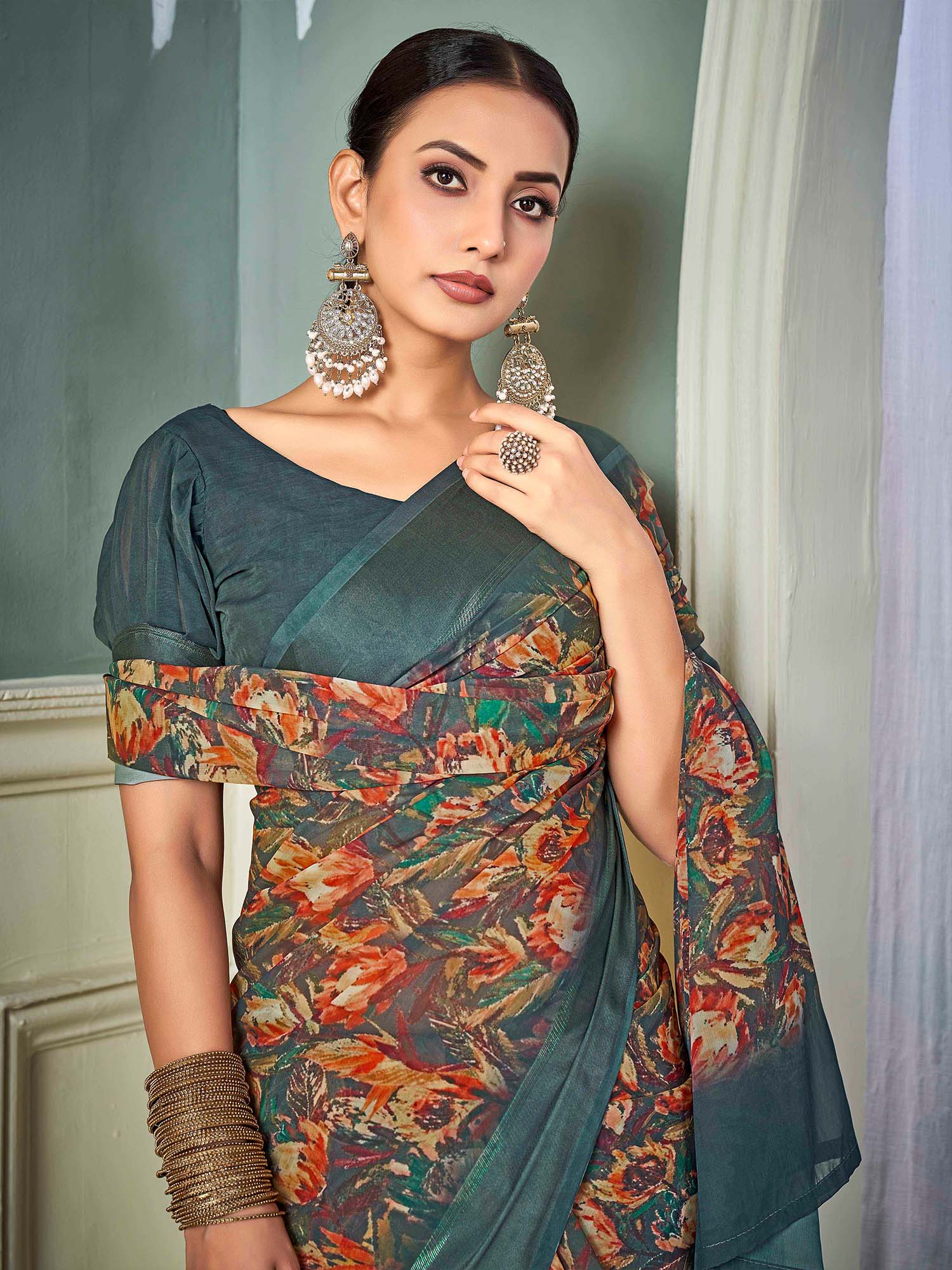 هذا الساري من ساري مول مصنوع من الشيفون ولونه رمادي. تأتي ساري مول مع قطعة بلوزة يمكن تفصيلها حسب ذوقك. صُنع هذا الساري على أيدي حرفيين مهرة دون المساومة على جودته. بتصميمه الجميل وقماشه الرائع، سيحظى هذا الساري بإعجاب الجميع. مقاس الساري 5.5 متر، ومقاس البلوزة 0.8 متر، مقاس حر.