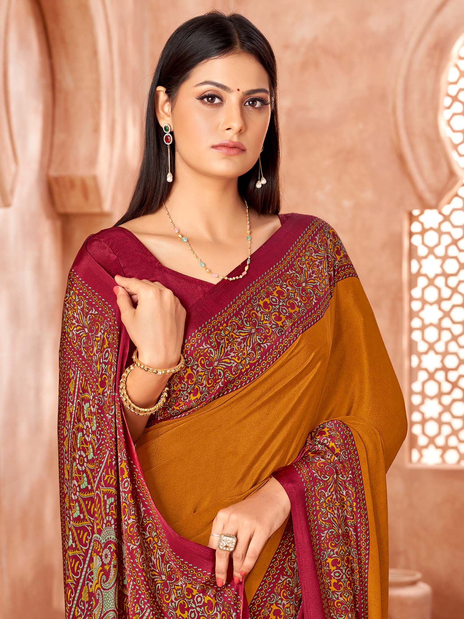 هذا الساري من ساري مول مصنوع من الكريب بلون الخردل. تأتي ساري مول مع قطعة قماش للبلوزة، يمكن تفصيلها حسب ذوقك. صُنع هذا الساري على أيدي حرفيين مهرة دون المساومة على الجودة. بتصميمه الجميل وقماشه الرائع، سيحظى هذا الساري بإعجاب الجميع. مقاس الساري 5.5 متر، ومقاس البلوزة 0.8 متر، مقاس حر.