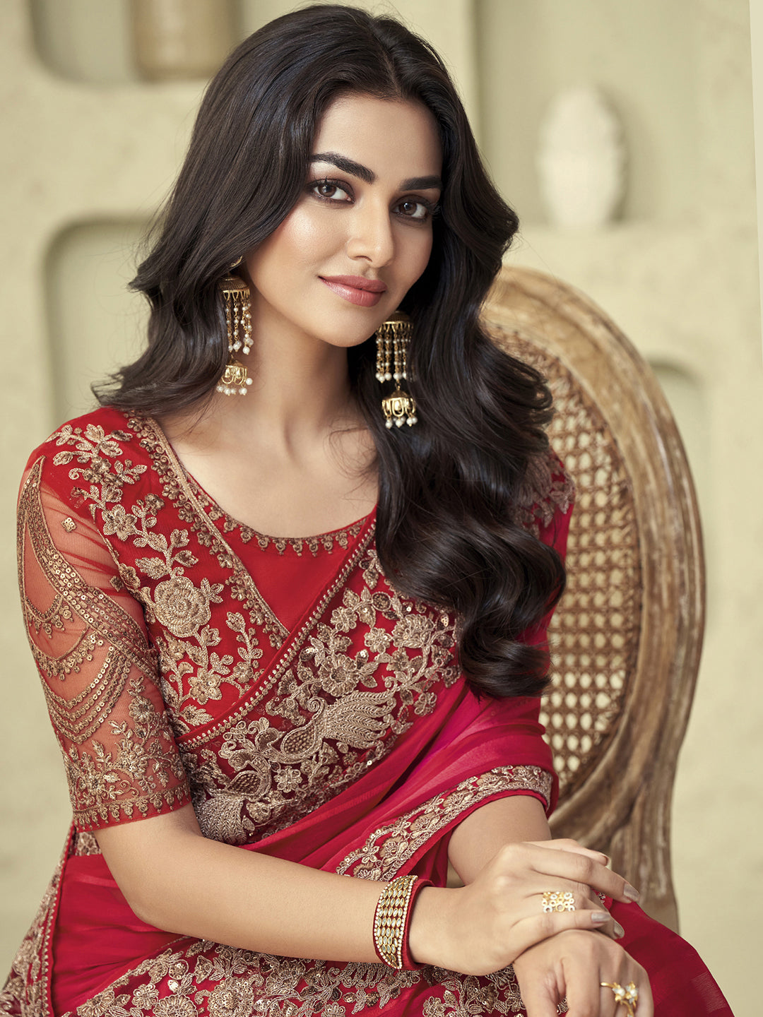 هذا الساري من ساري مول مصنوع من قماش الجورجيت ولونه وردي. تأتي ساري ساري مول مع قطعة بلوزة يمكن تفصيلها حسب ذوقك. صُنع هذا الساري على أيدي حرفيين مهرة دون المساومة على جودته. بتصميمه الجميل وقماشه الرائع، سيحظى هذا الساري بإعجاب الجميع. مقاس الساري 5.5 متر، ومقاس البلوزة 0.8 متر، مقاس حر.