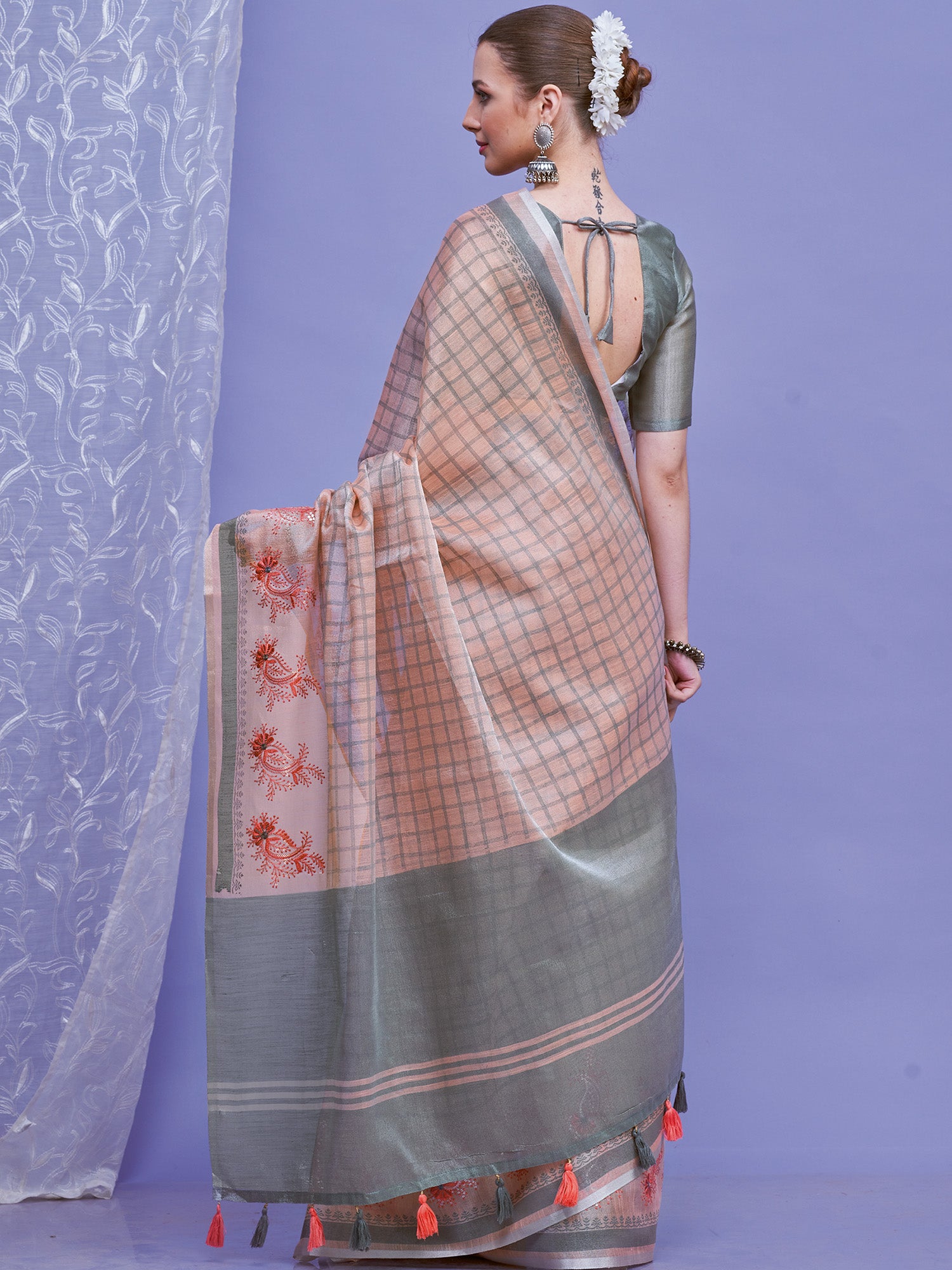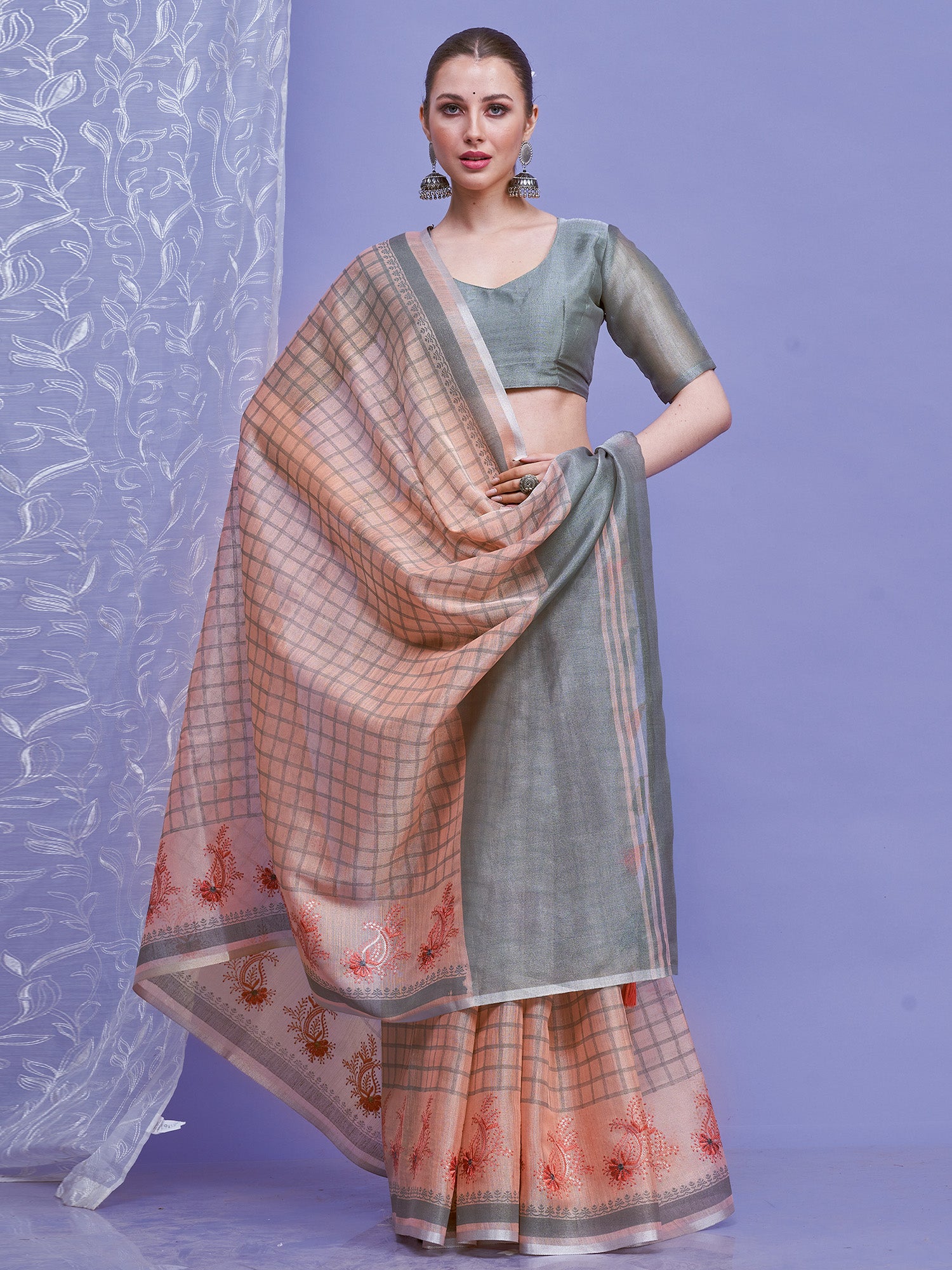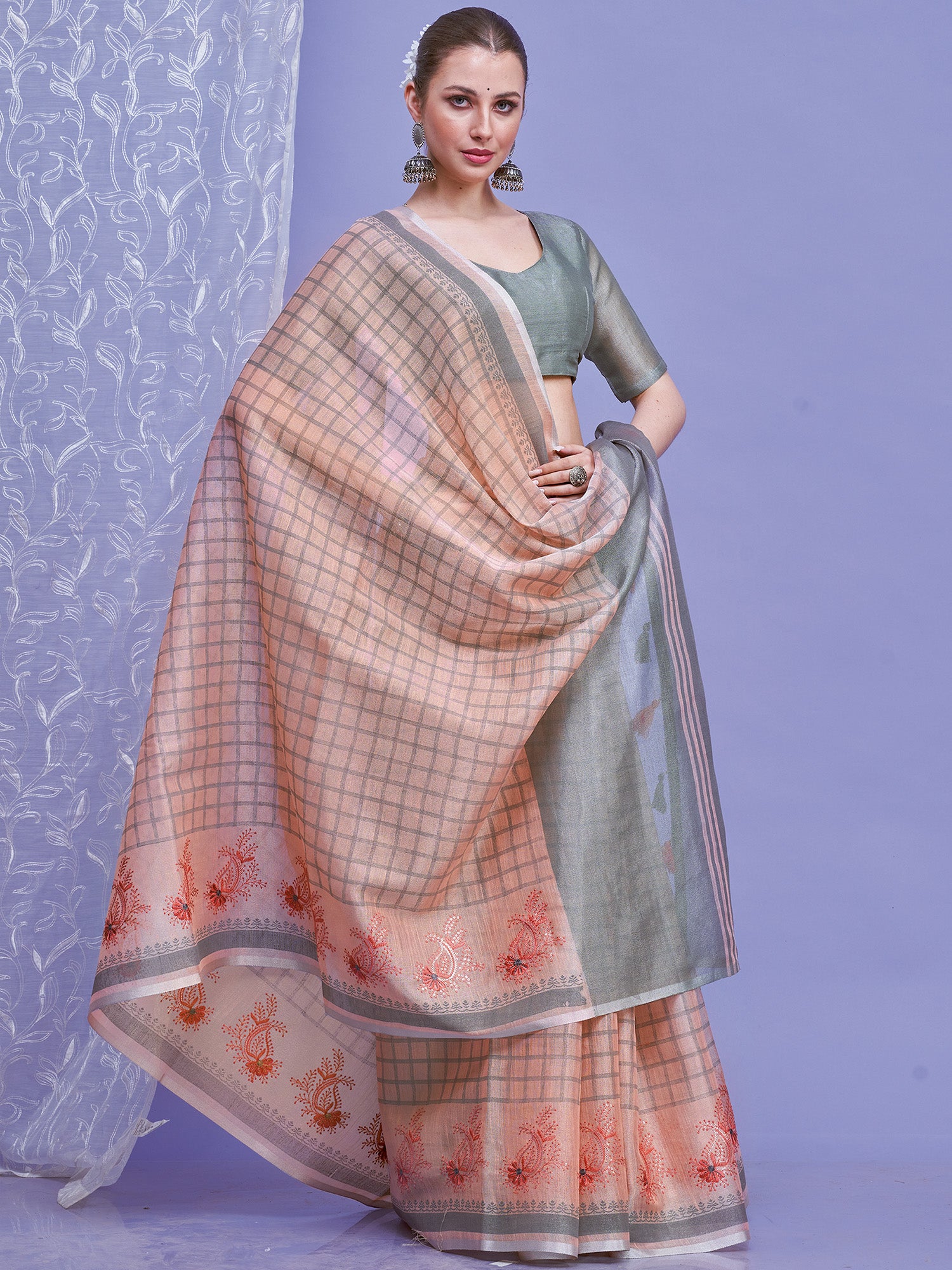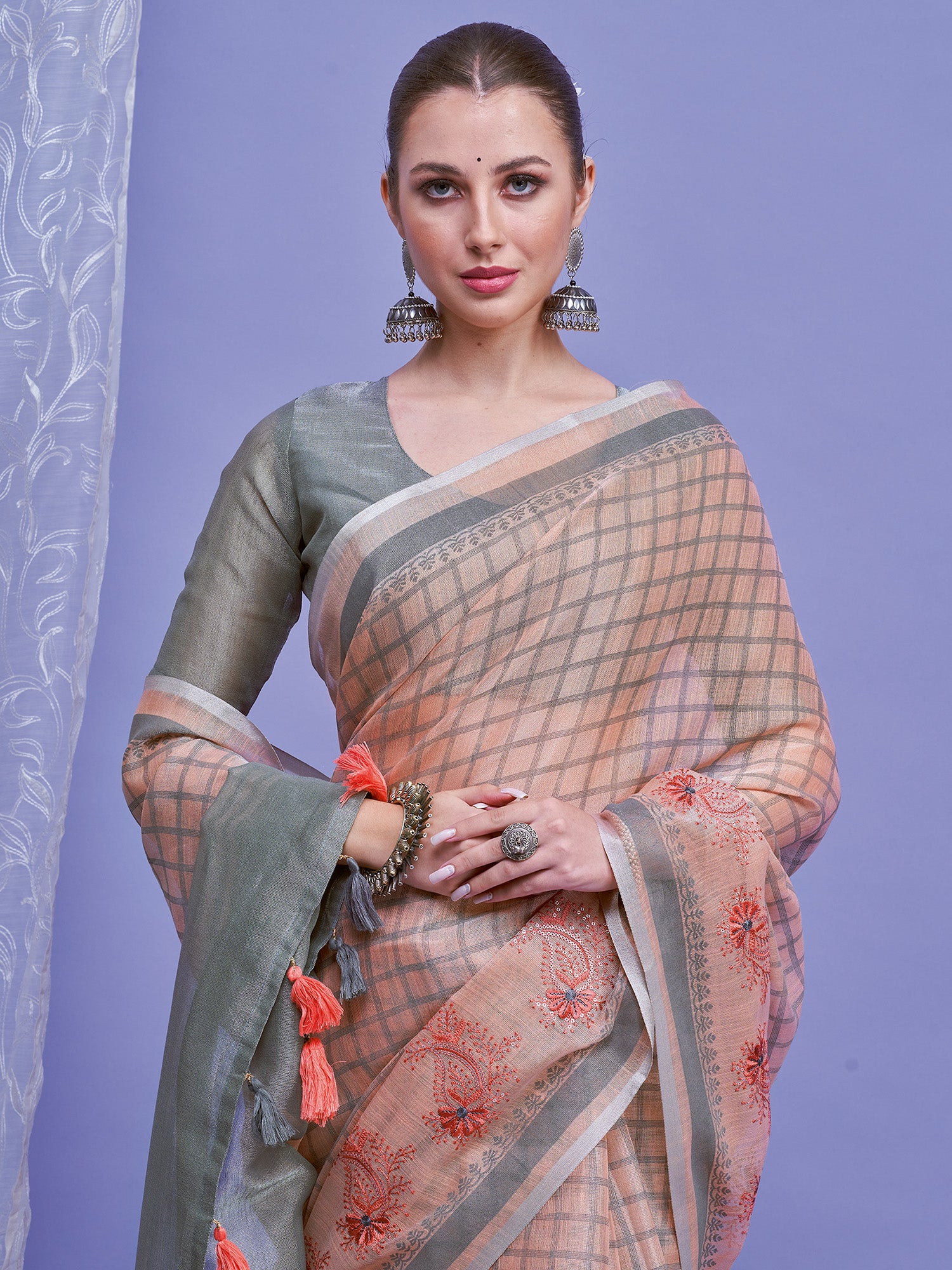 هذا الساري من ساري مول مصنوع من الكتان ولونه خوخي. تأتي ساري مول العرقية مع قطعة بلوزة يمكن تفصيلها حسب ذوقك. صُنع هذا الساري على أيدي حرفيين مهرة دون المساومة على جودته. بتصميمه الجميل وقماشه الرائع، سيحظى هذا الساري بإعجاب الجميع. مقاس الساري 5.5 متر، ومقاس البلوزة 0.8 متر، مقاس حر.