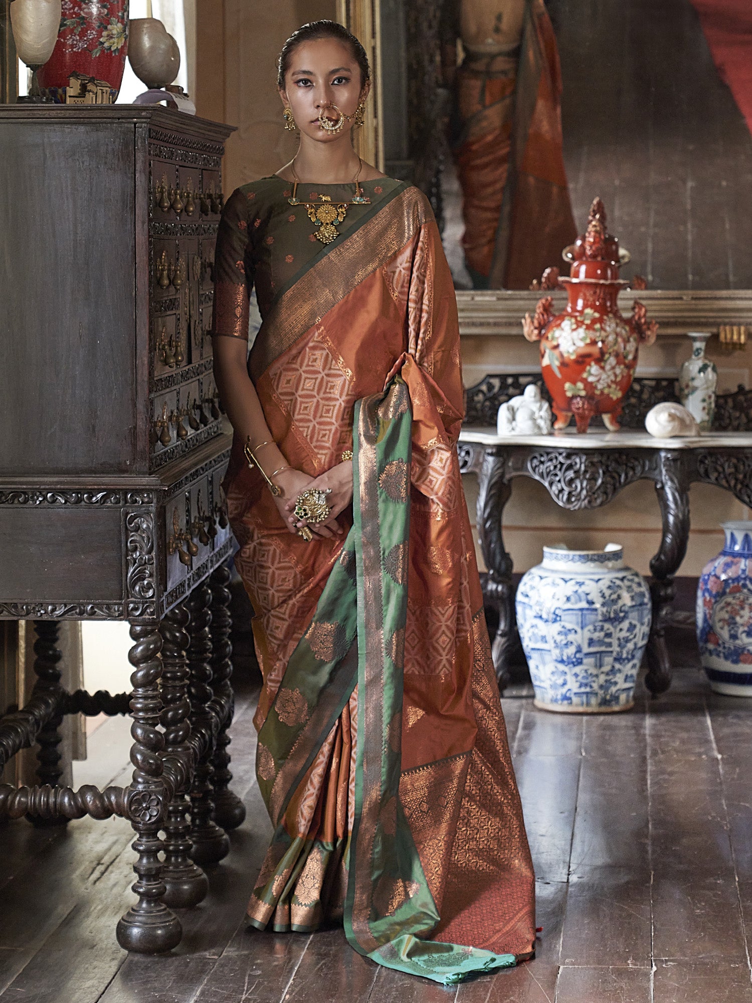 هذا الساري من ساري مول مصنوع من الحرير الخالص بلون الصدأ. تأتي ساري مول مع قطعة قماش للبلوزة، يمكن تفصيلها حسب ذوقك. صُنع هذا الساري على أيدي حرفيين مهرة دون المساومة على الجودة. بتصميمه الجميل وقماشه الفاخر، سيحظى هذا الساري بإعجاب الجميع. مقاس الساري 5.5 متر، ومقاس البلوزة 0.8 متر، مقاس حر.