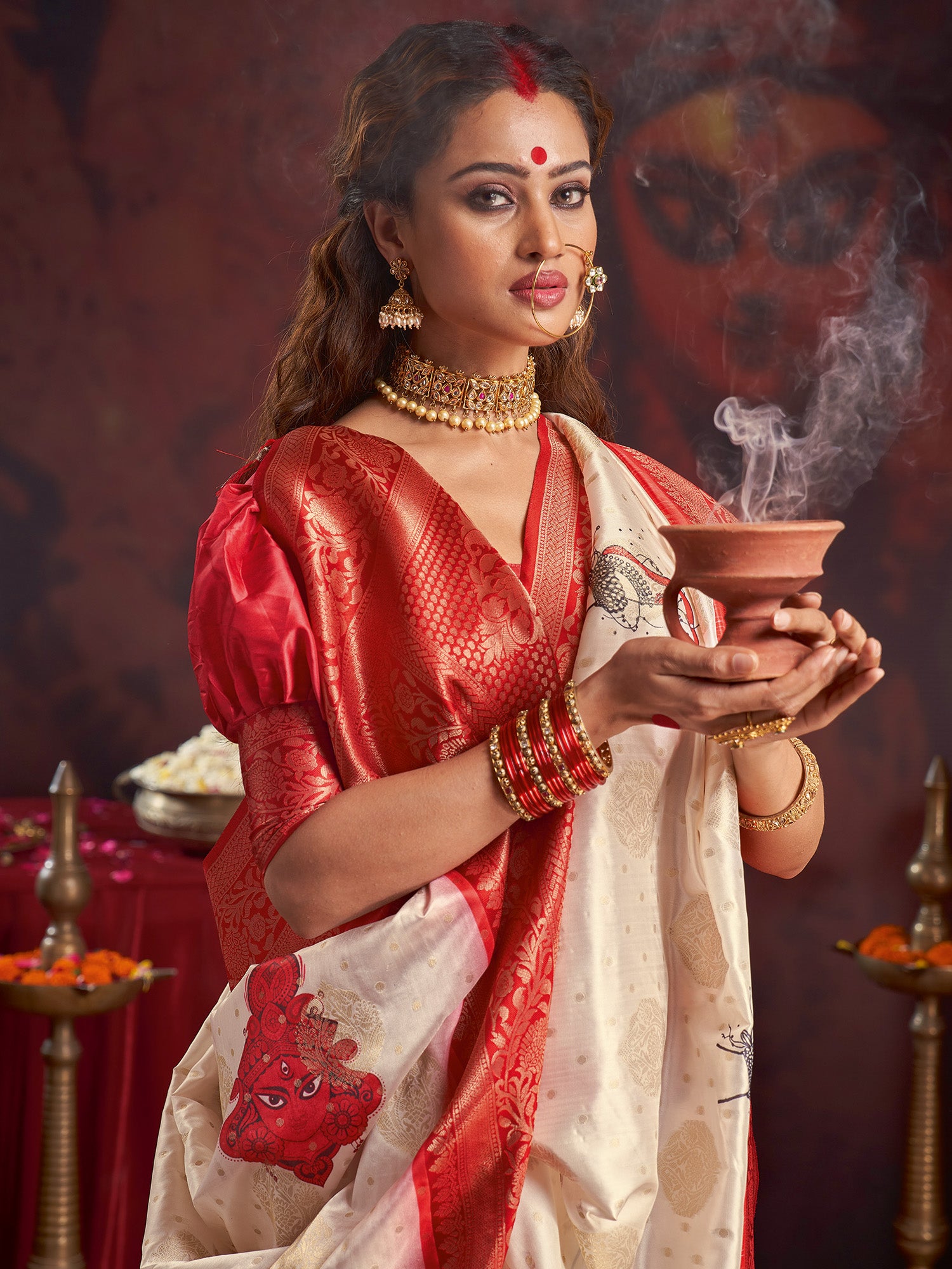 هذا الساري من ساري مول مصنوع من حرير الساتان ولونه أبيض كريمي. تأتي ساري مول مع قطعة قماش للبلوزة، يمكن تفصيلها حسب ذوقك. صُنع هذا الساري على أيدي حرفيين مهرة دون المساومة على جودته. بتصميمه الجميل وقماشه الفاخر، سيحظى هذا الساري بإعجاب الجميع. مقاس الساري 5.5 متر، ومقاس البلوزة 0.8 متر، مقاس حر.