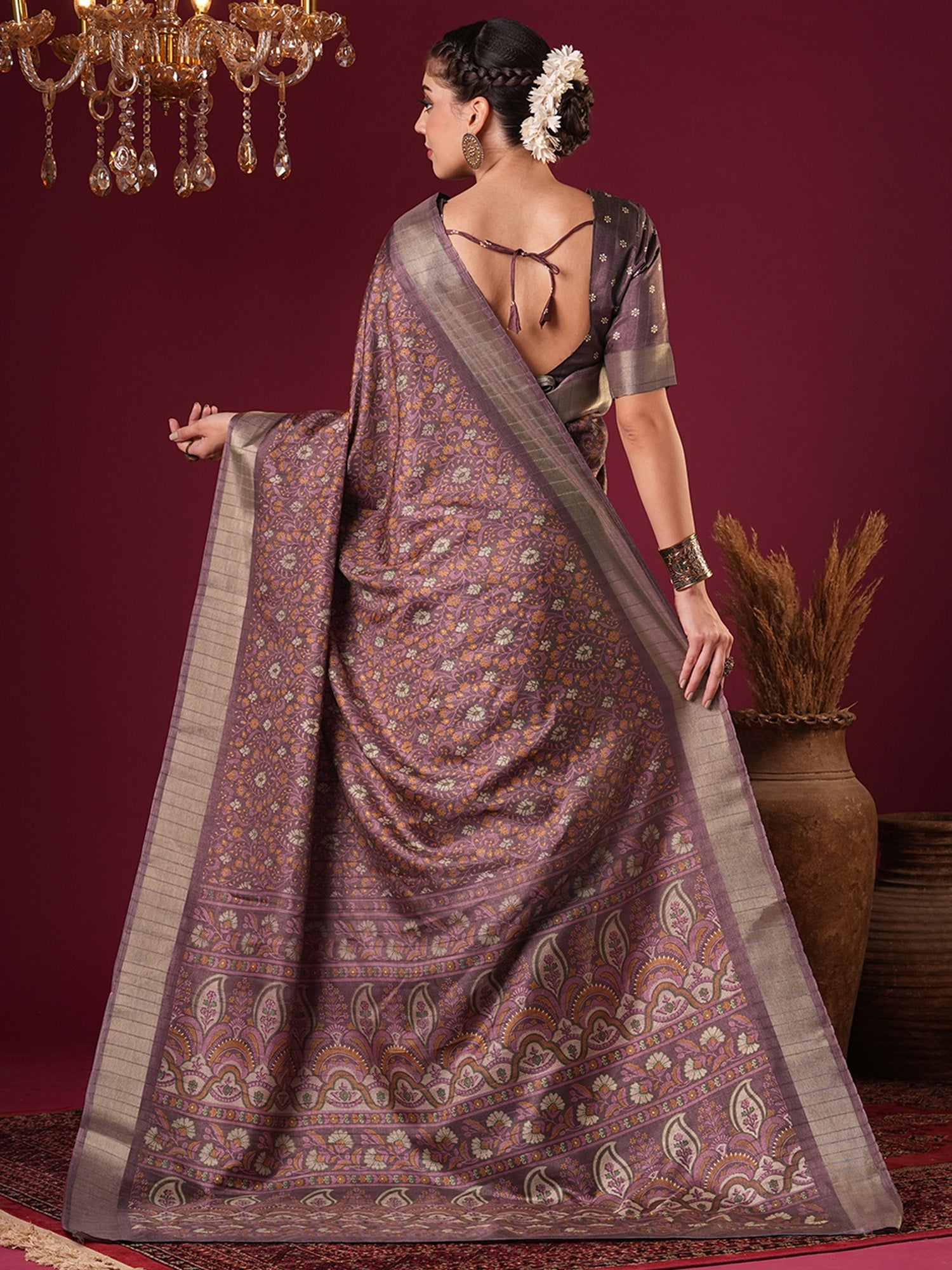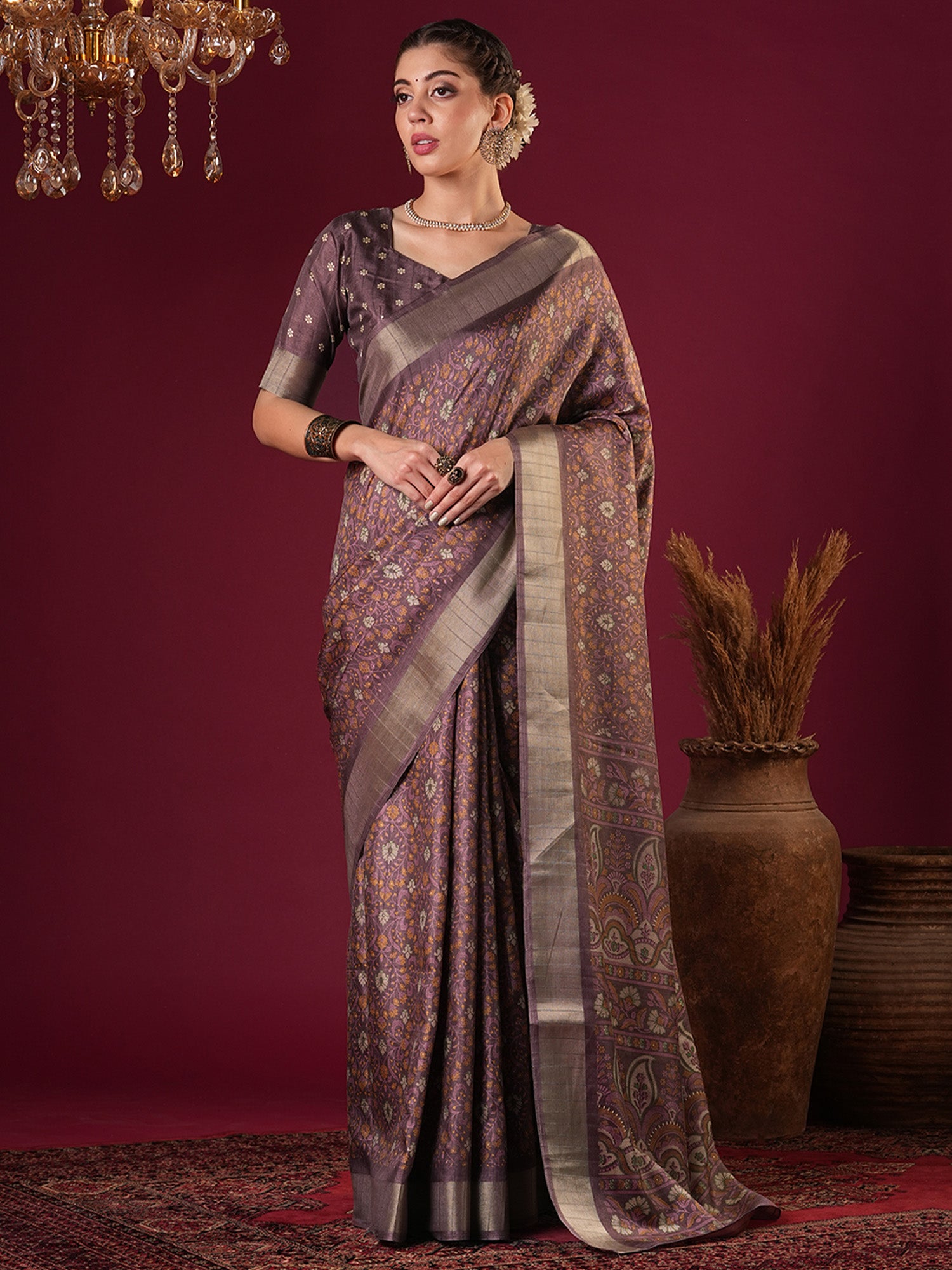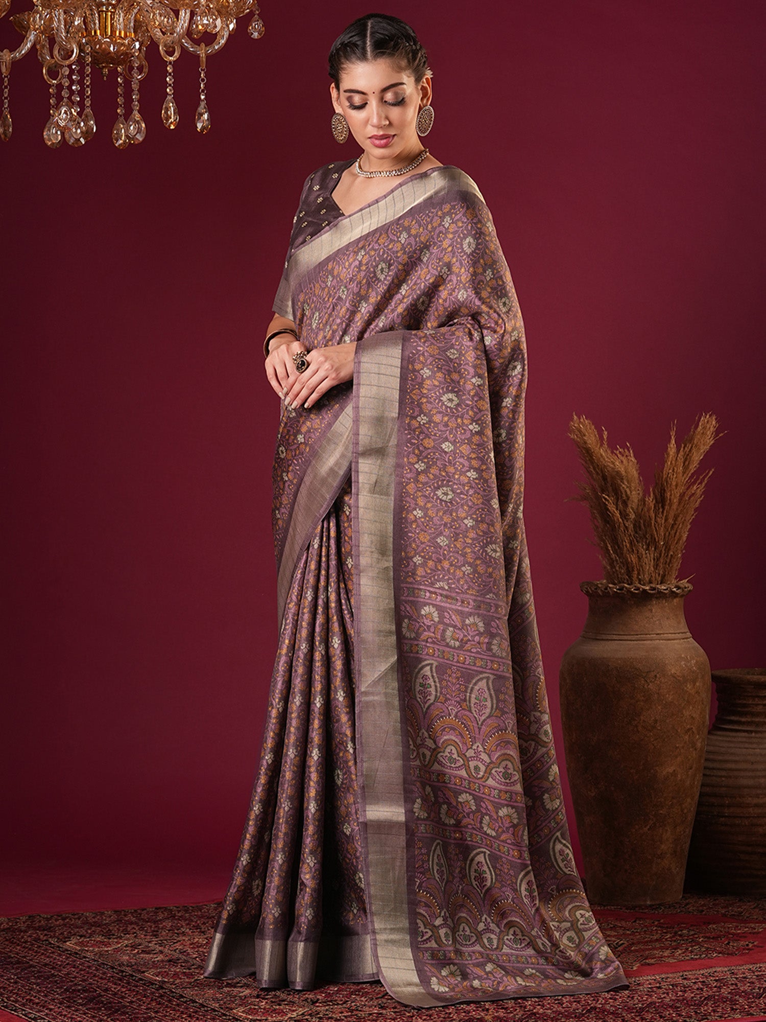 هذا الساري من ساري مول مصنوع من مزيج الحرير ولونه بنفسجي فاتح. تأتي ساري مول مع قطعة قماش للبلوزة، يمكن تفصيلها حسب ذوقك. صُنع هذا الساري على أيدي حرفيين مهرة دون المساومة على جودته. بتصميمه الجميل وقماشه الفاخر، سيحظى هذا الساري بإعجاب الجميع. مقاس الساري 5.5 متر، ومقاس البلوزة 0.8 متر، مقاس حر.