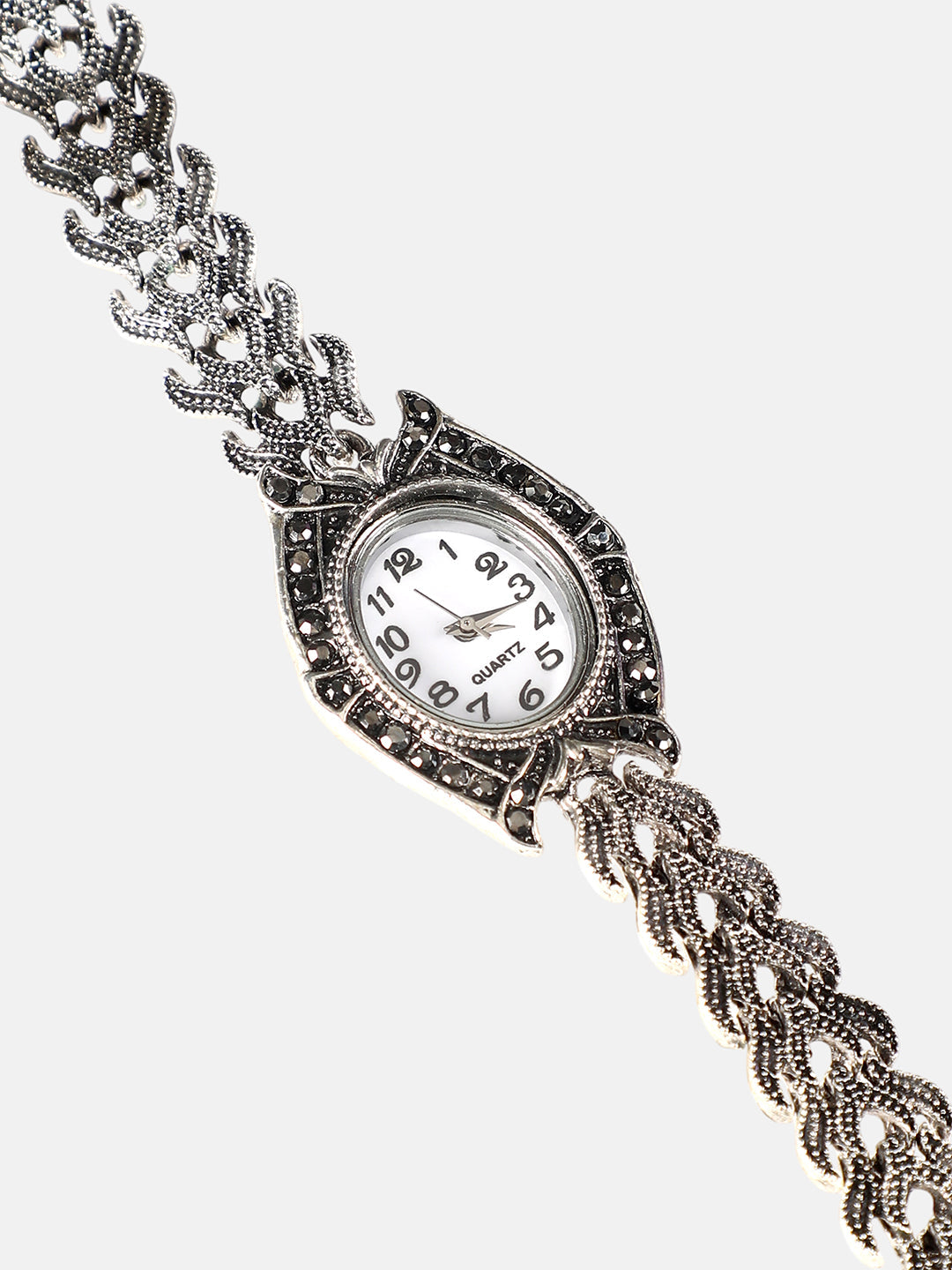 ساعة هوت صوص النسائية البيضاوية "ذا ويشبون" | سوار من الفولاذ المقاوم للصدأ بلون فضي عتيق | مينا أبيض عاجي | مقاس واحد | إبزيم قابل للطي | كوارتز | تعمل بالبطارية | ساعة يد أنيقة مناسبة للنساء والفتيات