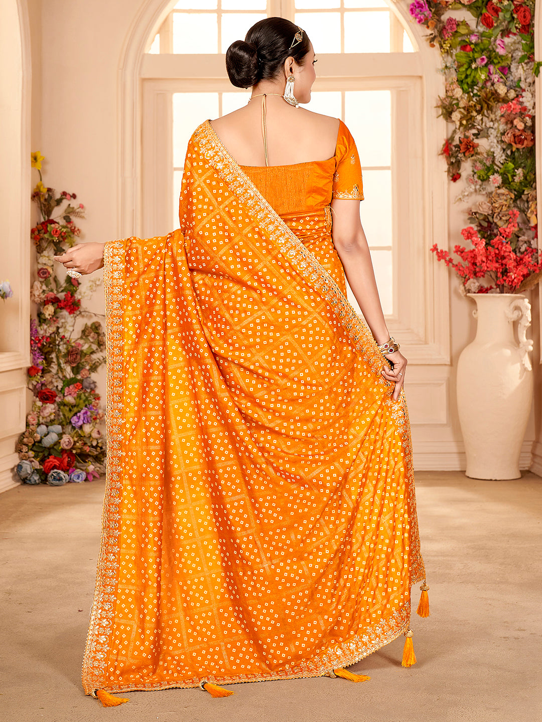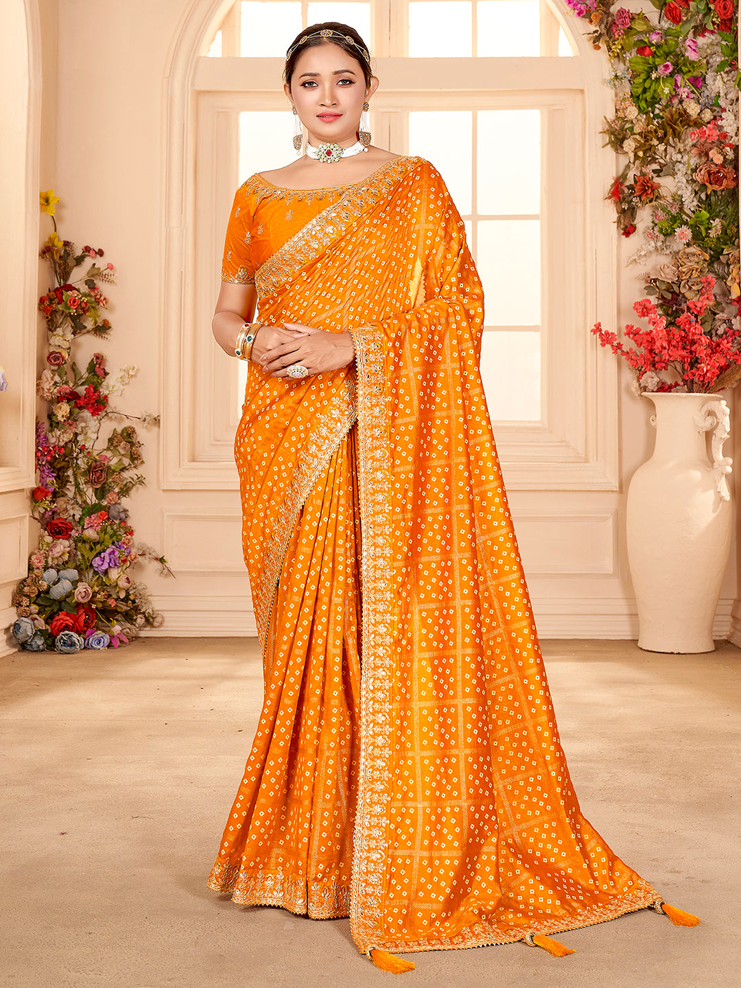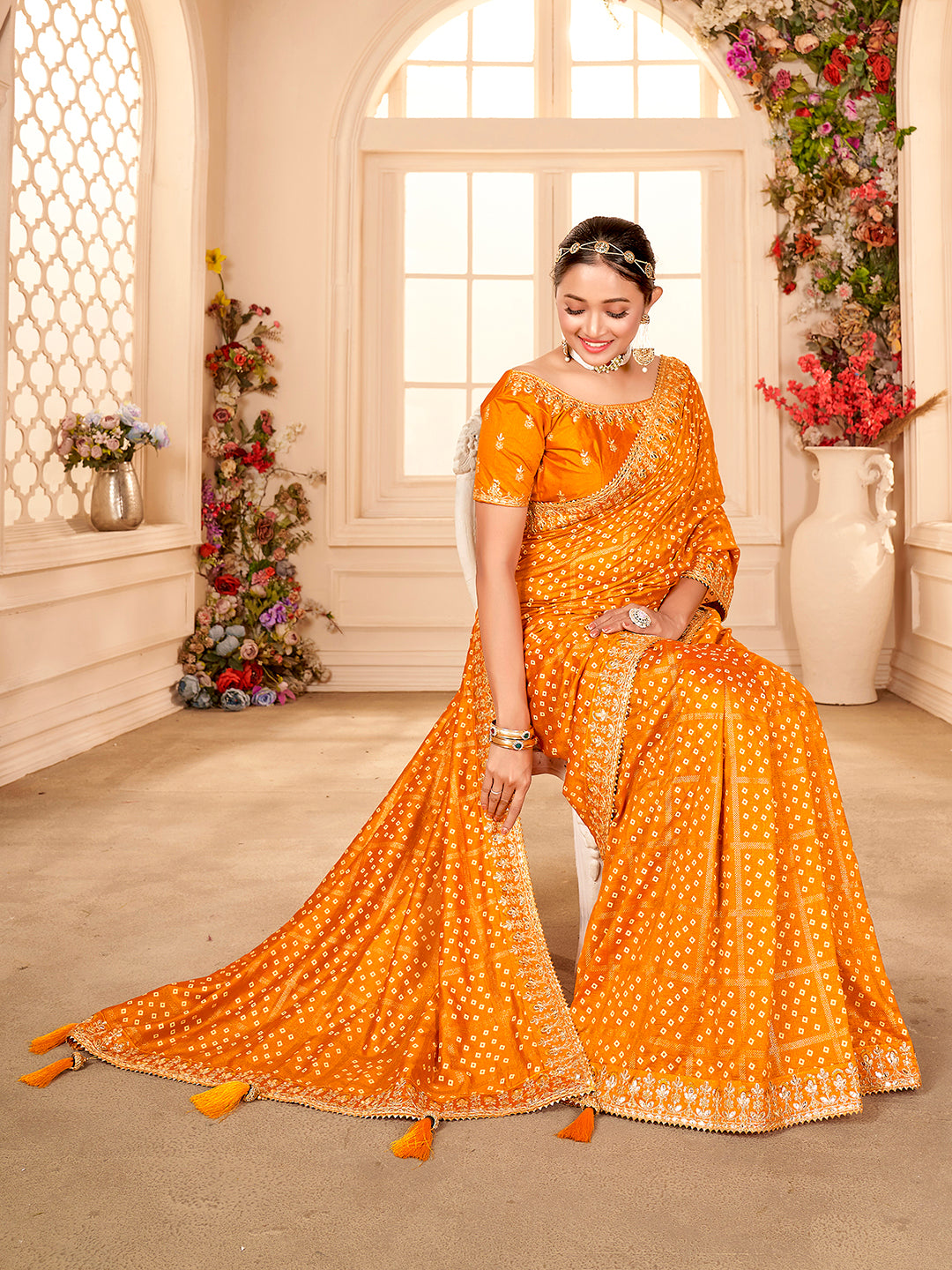 هذا الساري من دار ساري مول مصنوع من حرير فيتشيترا ولونه أصفر. تأتي ساري ساري مول العرقية مع قطعة بلوزة يمكن تفصيلها حسب ذوقك وتفضيلاتك. صُنع هذا الساري على أيدي حرفيين مهرة دون المساومة على جودته. بتصميمه الجميل وقماشه الرائع، سيجلب لك هذا الساري الكثير من الإطراء والثناء. مقاس الساري 5.5 متر، ومقاس البلوزة 0.8 متر، مقاس حر.