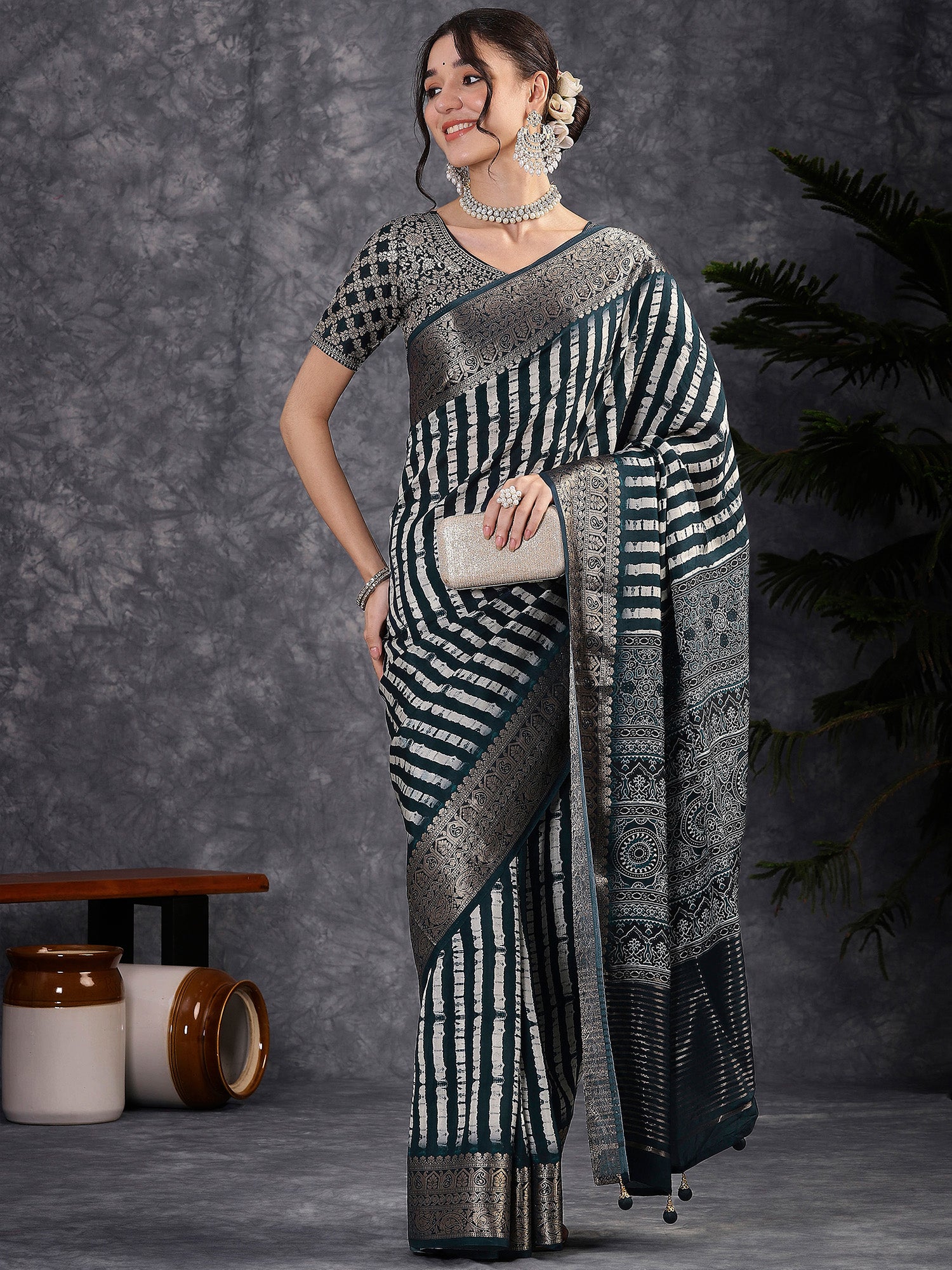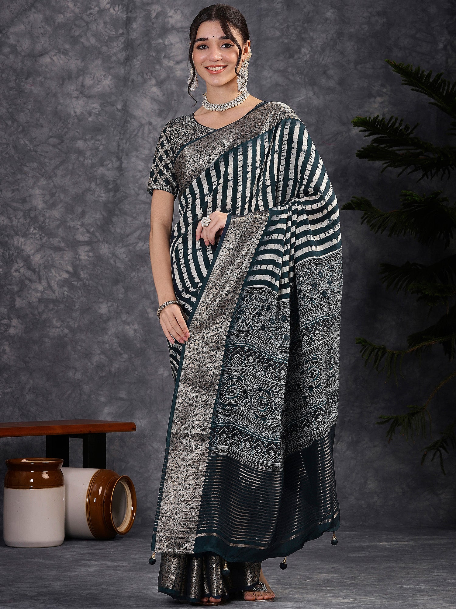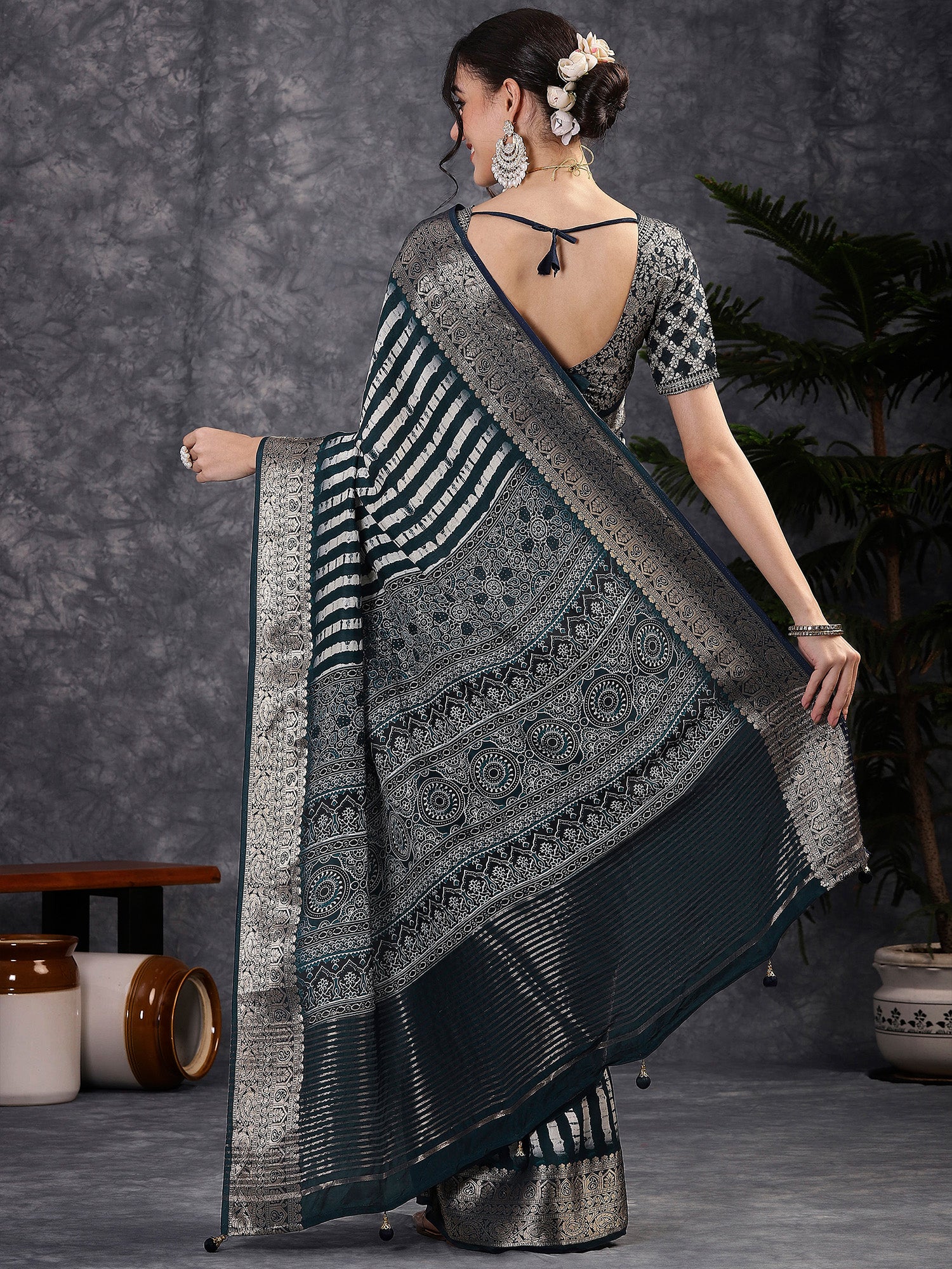 هذا الساري من ساري مول مصنوع من الفسكوز ولونه أزرق داكن. تأتي ساري مول مع قطعة قماش للبلوزة، يمكن تفصيلها حسب ذوقك. صُنع هذا الساري على أيدي حرفيين مهرة دون المساومة على جودته. بتصميمه الجميل وقماشه الفاخر، سيحظى هذا الساري بإعجاب الجميع. مقاس الساري 5.5 متر، ومقاس البلوزة 0.8 متر، مقاس حر.