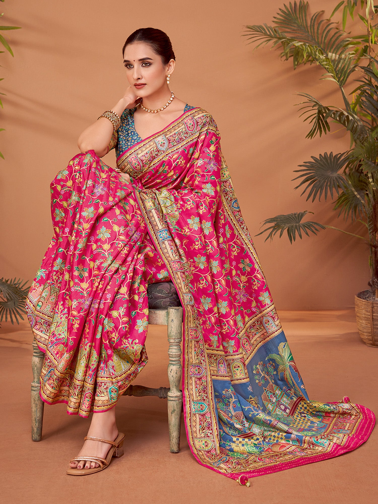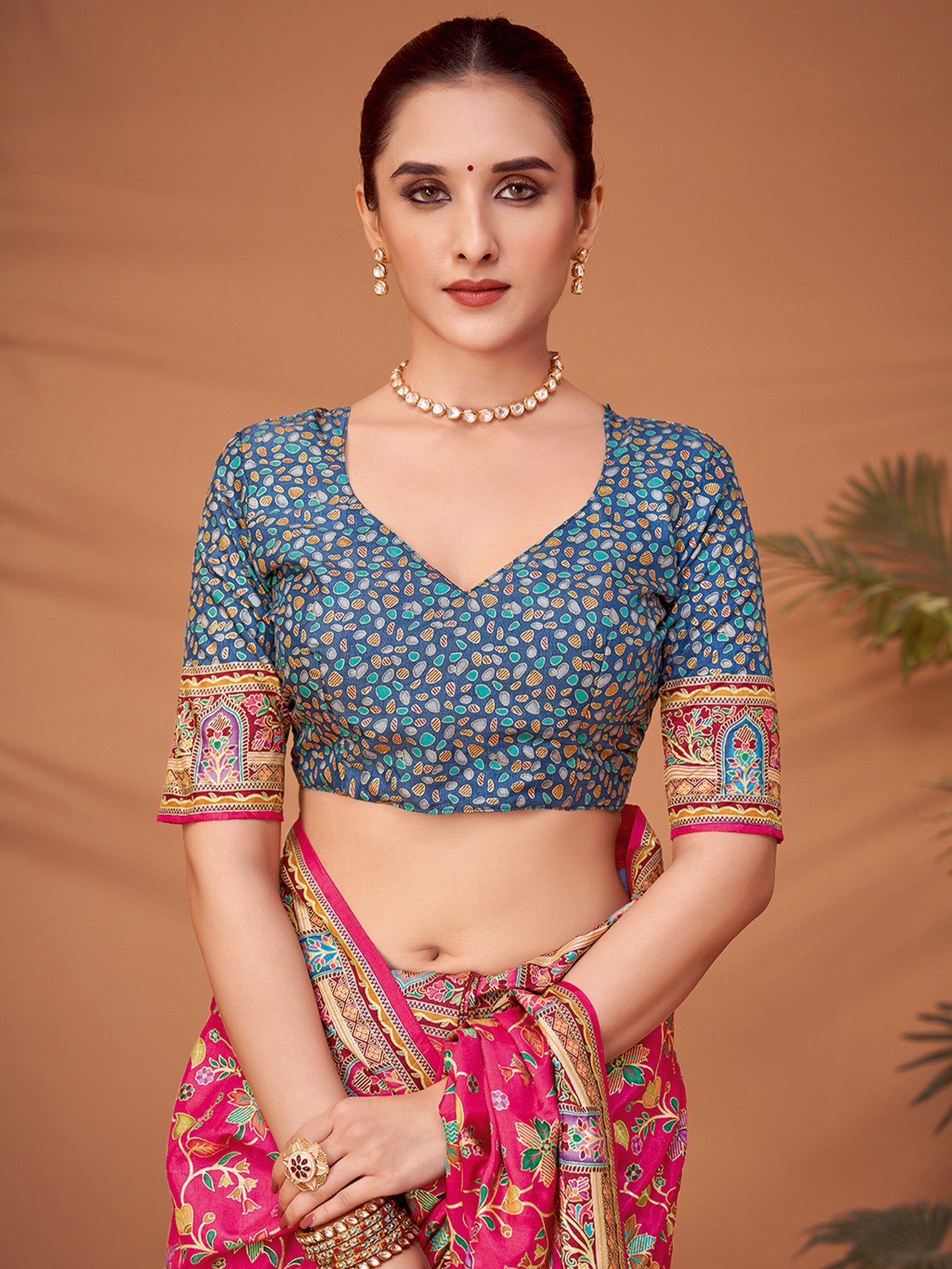 هذا الساري من ساري مول مصنوع من حرير الفسكوز ولونه وردي. تأتي ساري مول مع قطعة قماش للبلوزة، يمكن تفصيلها حسب ذوقك. صُنع هذا الساري على أيدي حرفيين مهرة دون المساومة على جودته. بتصميمه الجميل وقماشه الرائع، سيحظى هذا الساري بإعجاب الجميع. مقاس الساري 5.5 متر، ومقاس البلوزة 0.8 متر، مقاس حر.