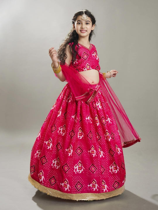 Girls Pink Digital Print Ready to Wear Lehenga With Choli