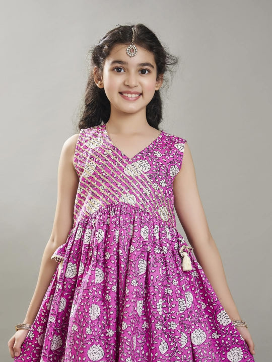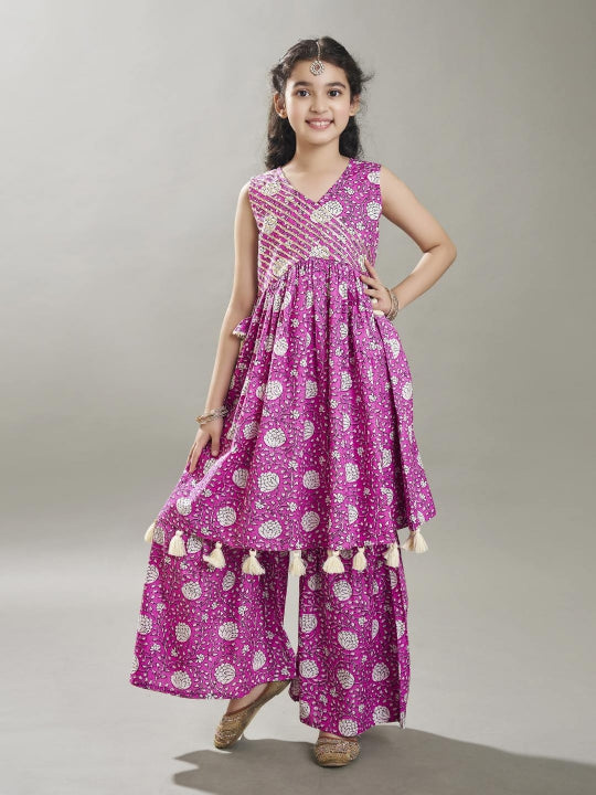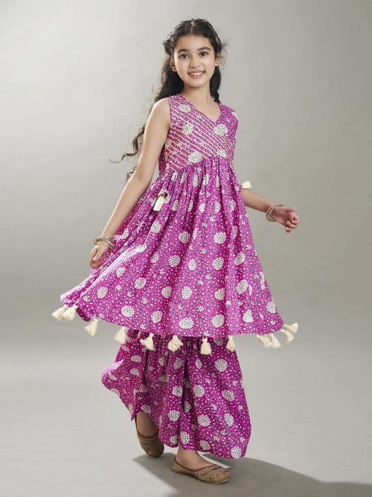 Girls purple Angrakha Gotta Patti Kurta with Sharara