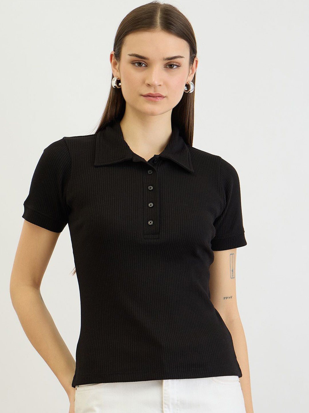 Short Sleeves |Cotton Blend |Black |Solid |Shirt Collar