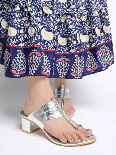 This Pair of Heeled Kolhapuri with all season sole is just perfect. These Kolhapuris reflect ethnic inspired contemporary fashion. Walk with ease as you wear these Kolhapuri Heels, it gives you maximum comfort yet a classy look. Pair them up with a suit or dress to form a statement look.