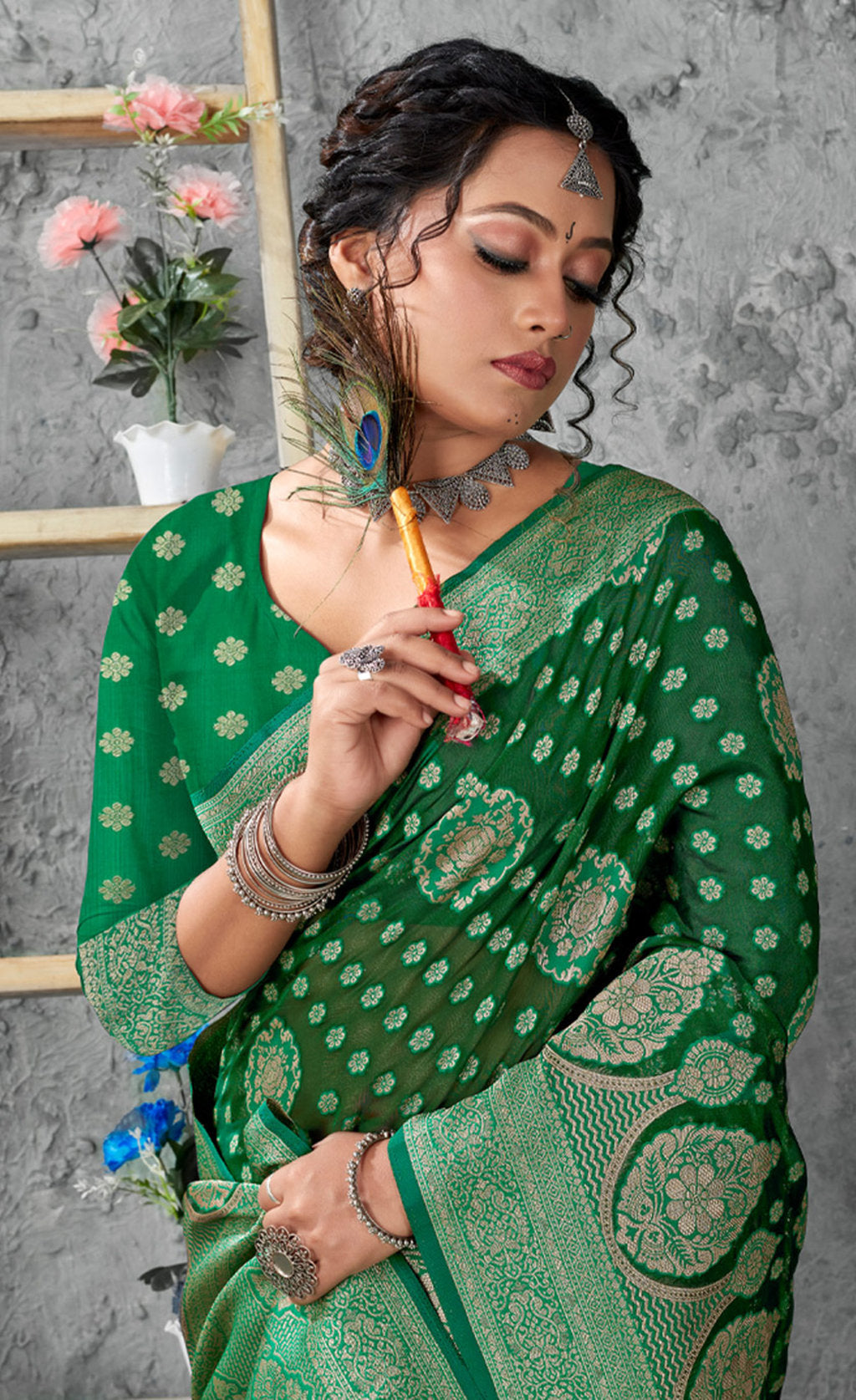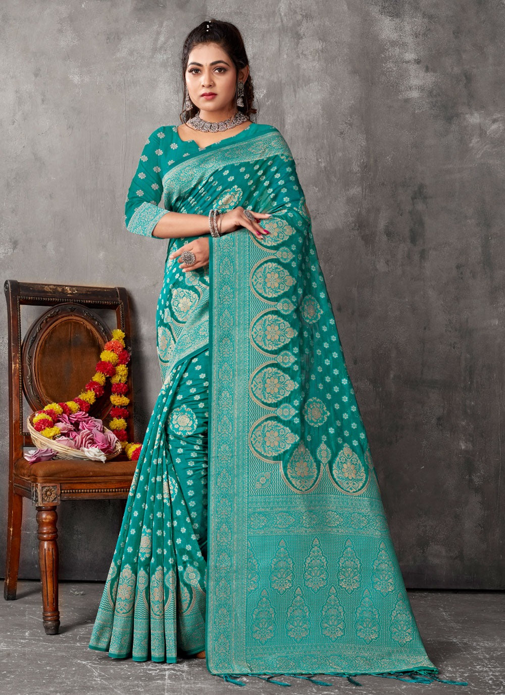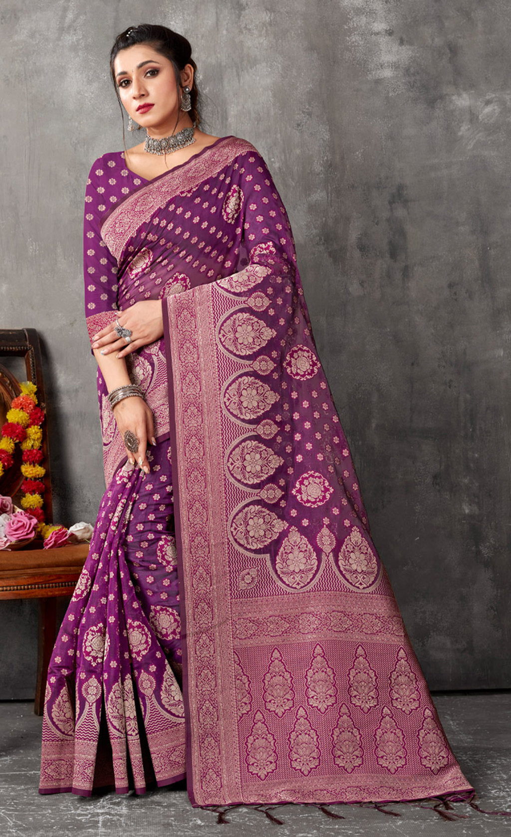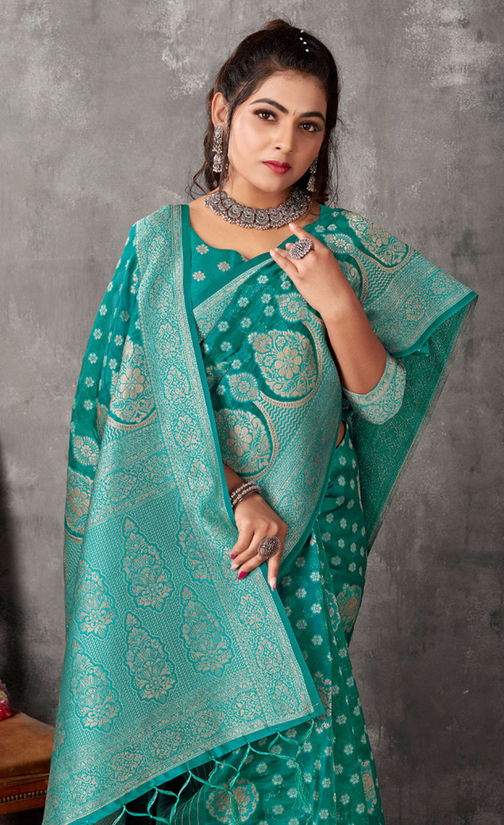 This Red color MADHUMATI Saree is crafted beautifully by us on Organza fabric. This Saree is perfect for Traditional and Festive wear as it has beautiful Woven Zari Work on it.