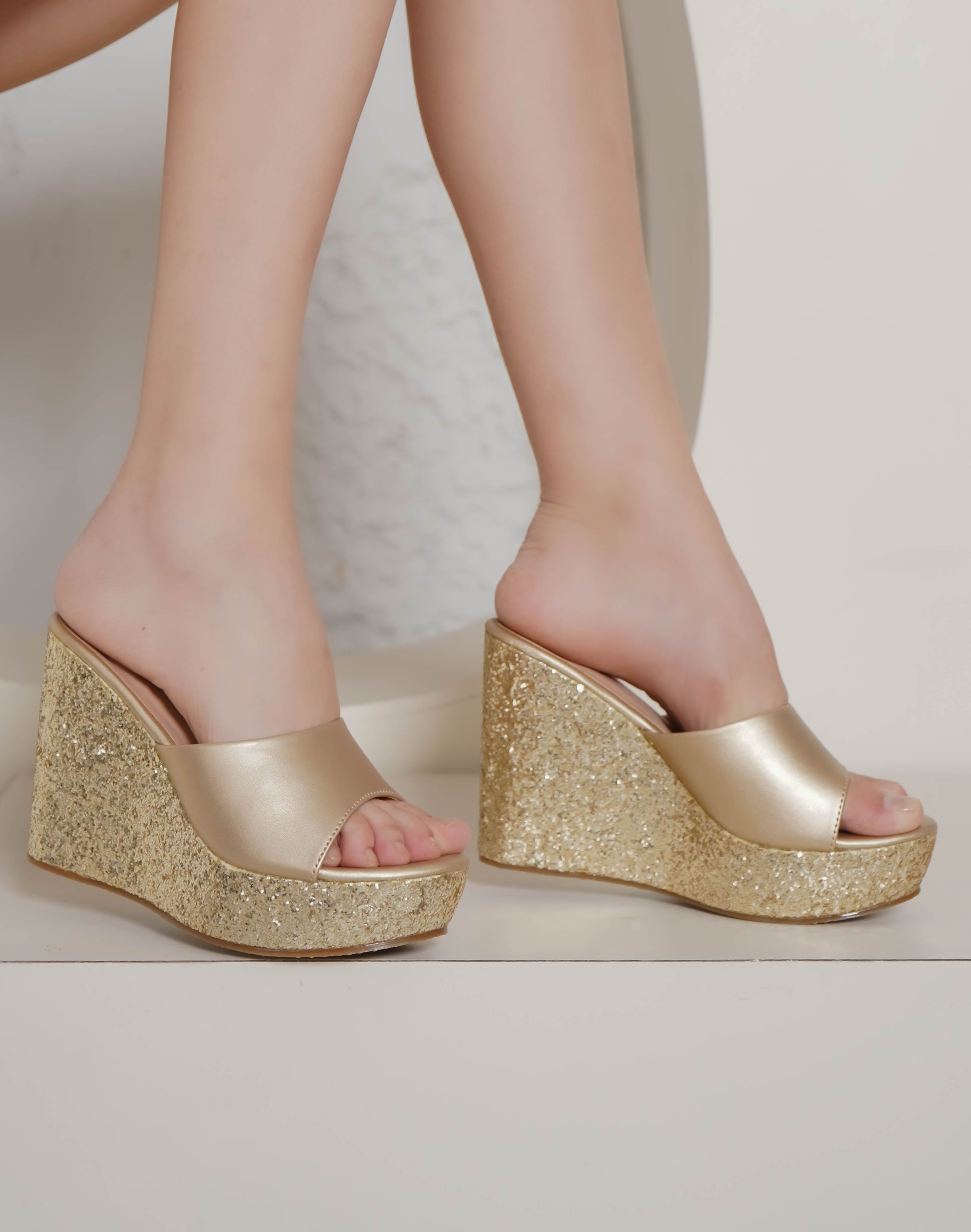 Casual Fashion Mules 5 Inches Wedge Open Back Round Toe Heels
