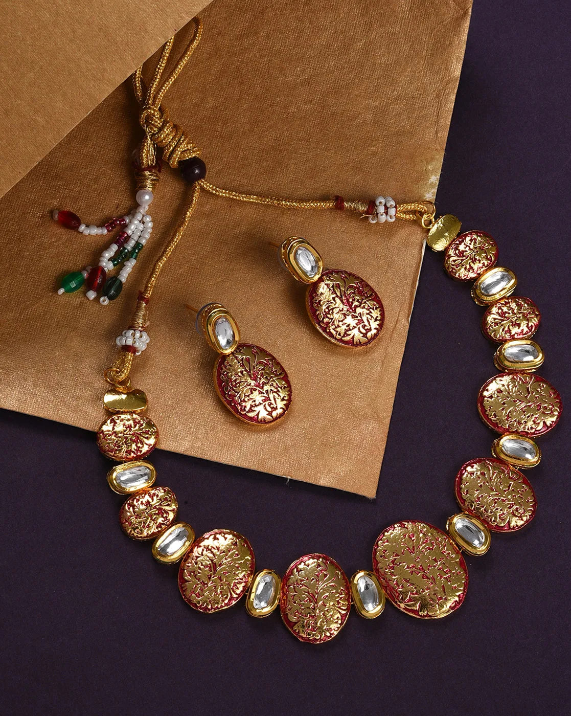 Jewellery sets always form an integral part of a woman’s dressing. It helps to provide a final touch to make the look complete. Consisting of a necklace, matching earrings, this necklace set glams up your look and makes you feel special.