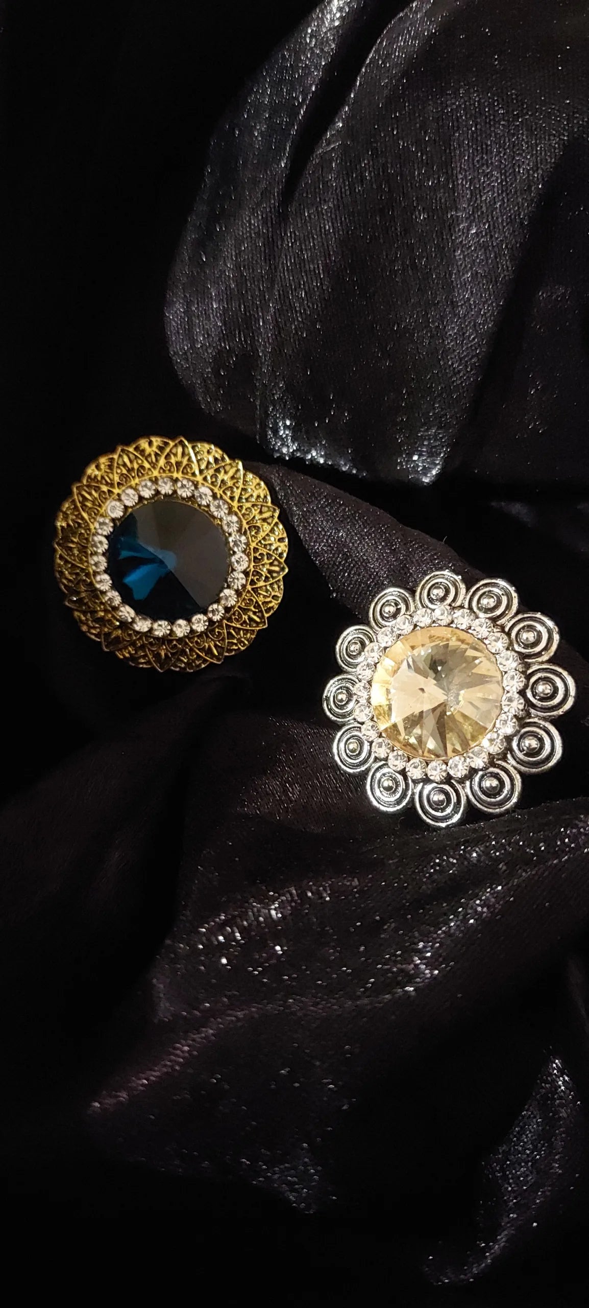 Golden-Toned Blue - Yellow stone-studded adjustable finger rings combo