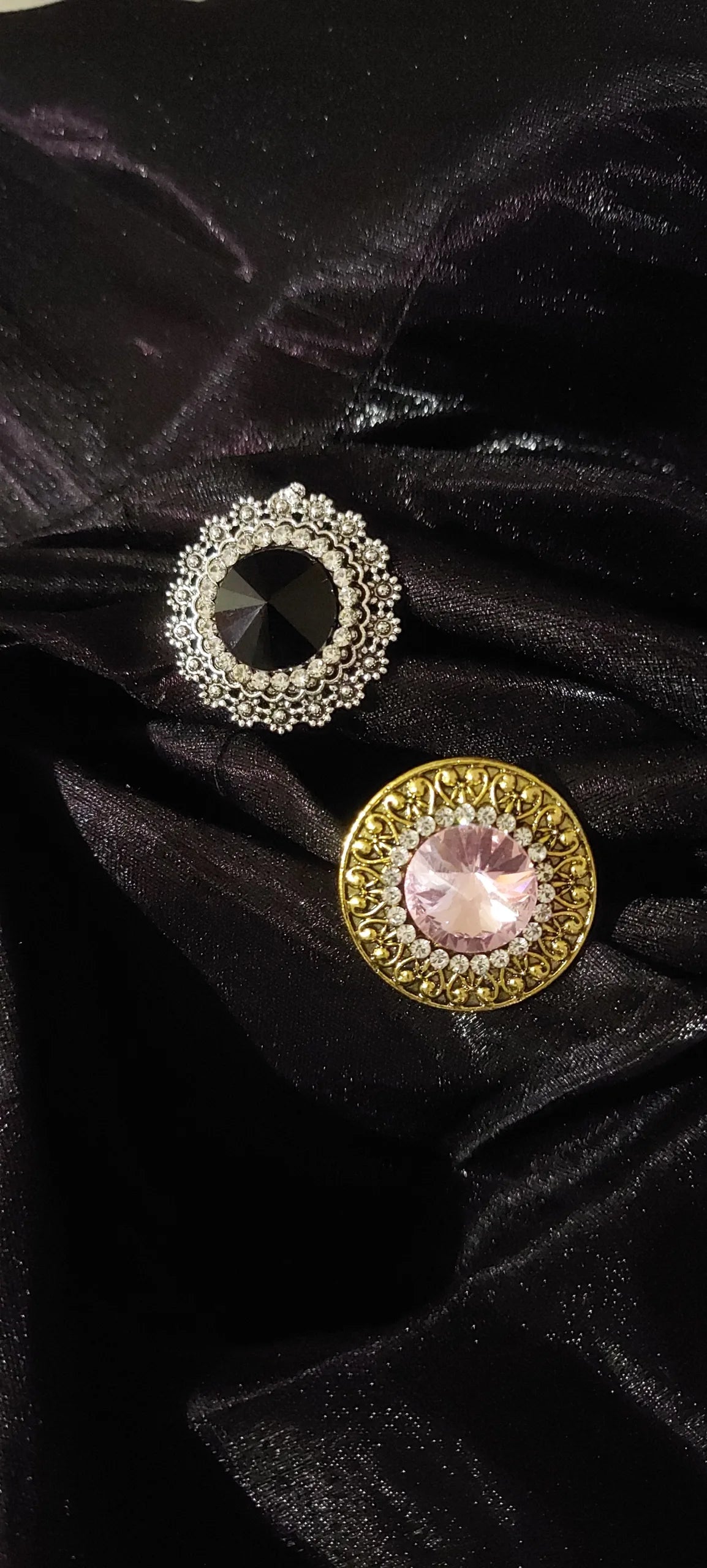 Golden-Toned Pink - Black stone-studded adjustable finger rings combo