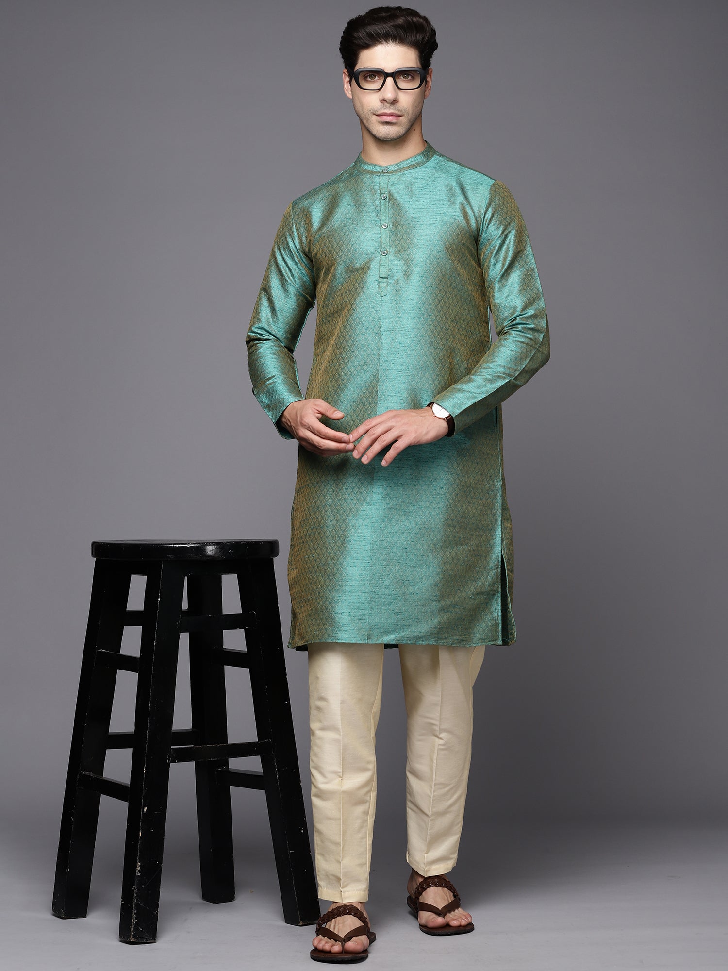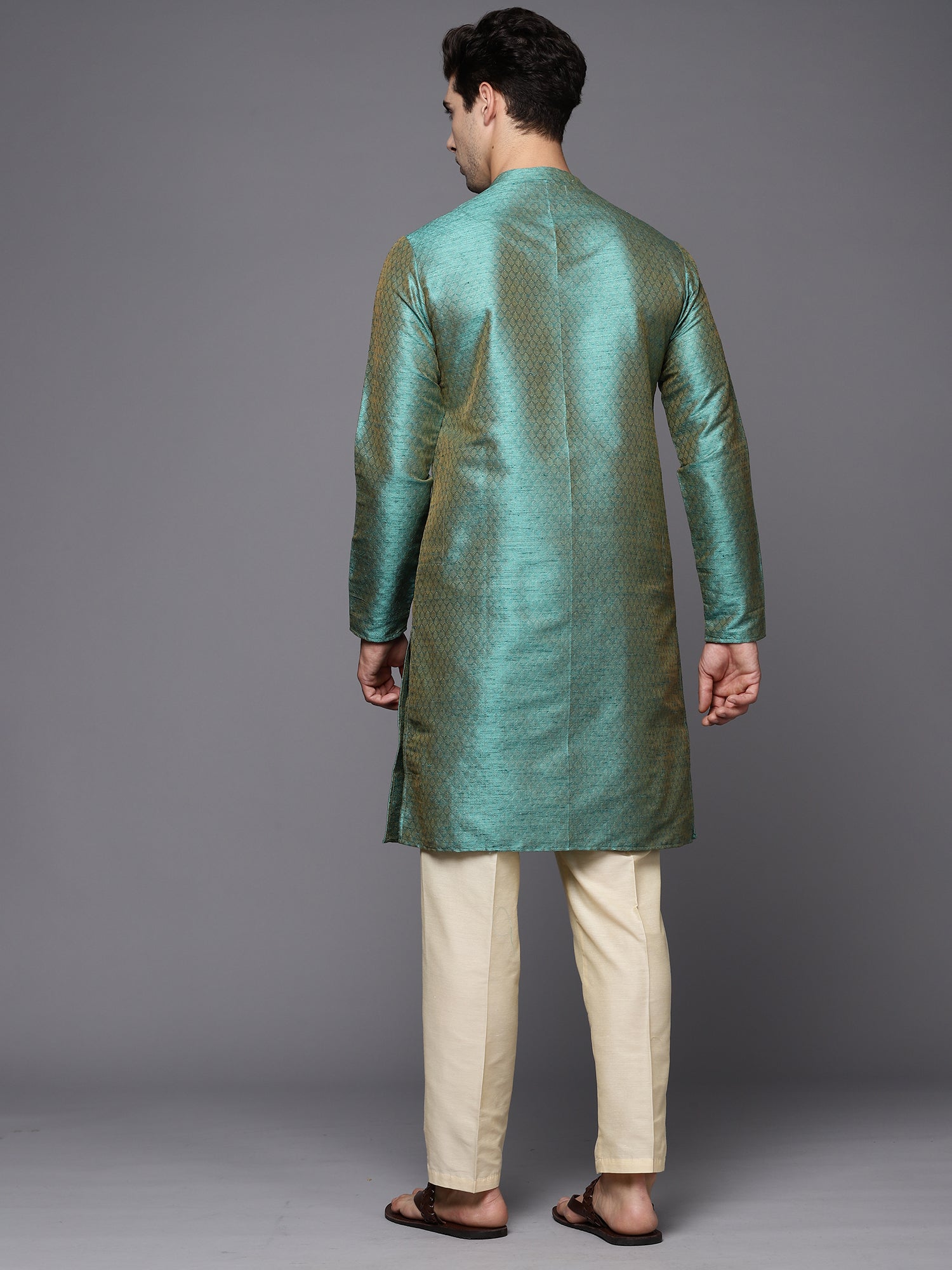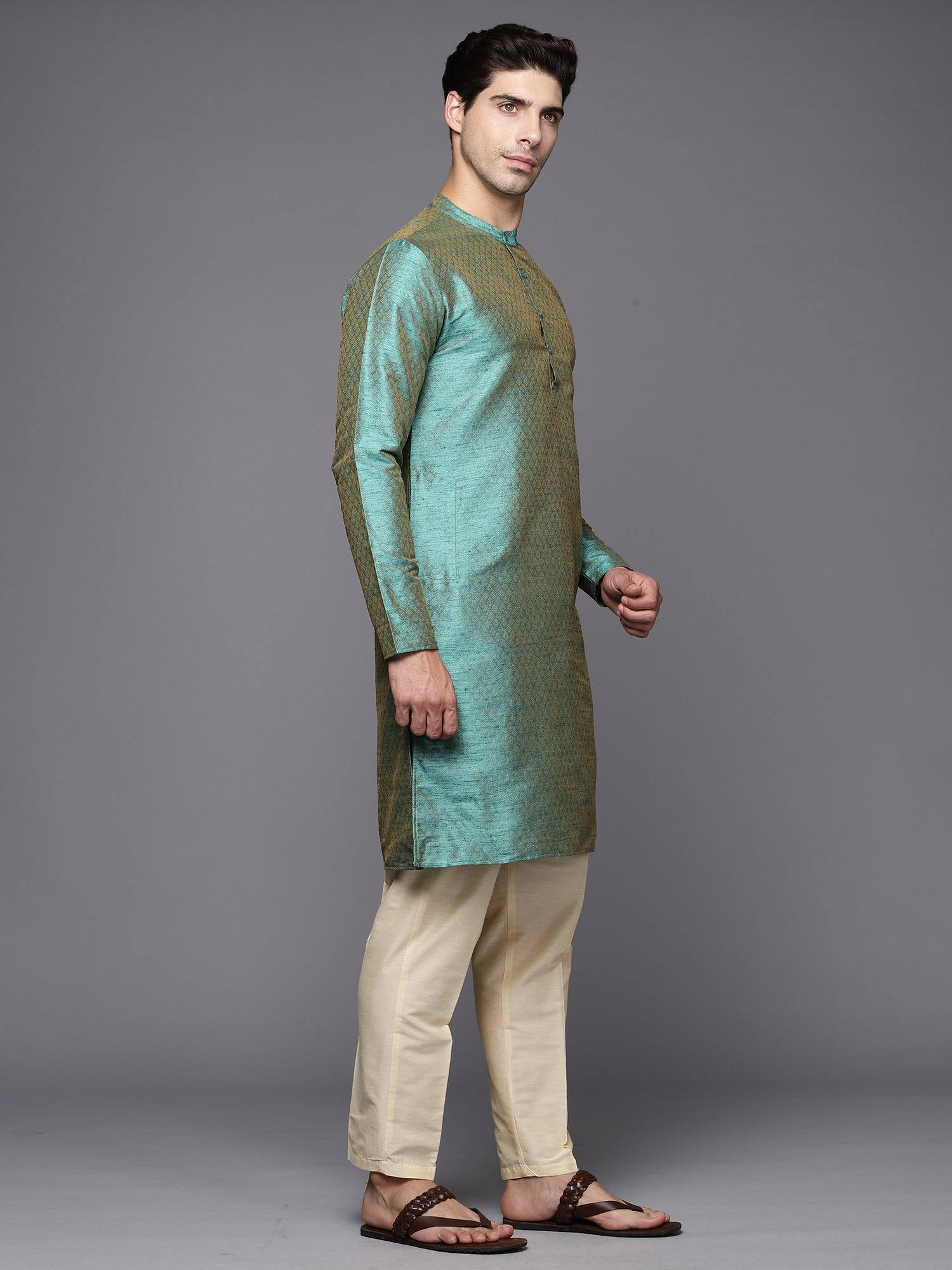 Indo Era Green Ethnic Motifs Jacquard Straight Kurtas