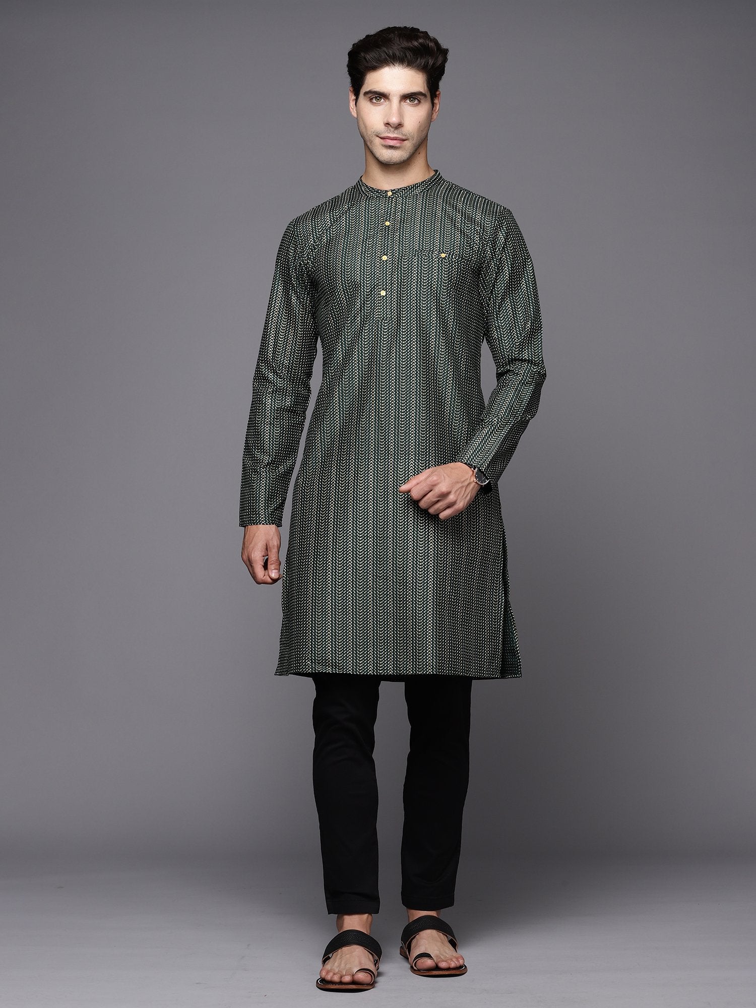 Indo Era Green Herringbone Cotton Straight Kurtas