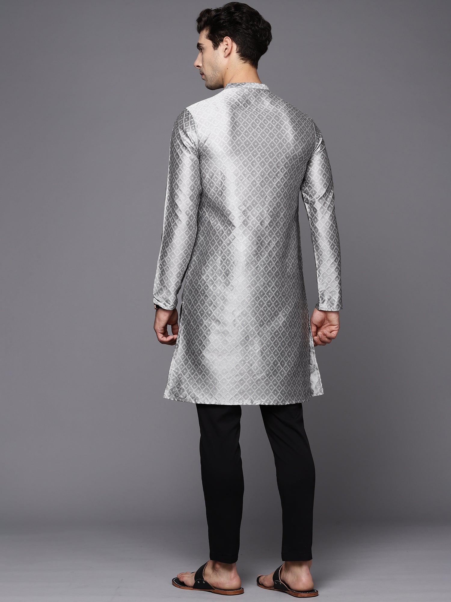 Indo Era Grey Ethnic Motifs Jacquard Straight Kurtas