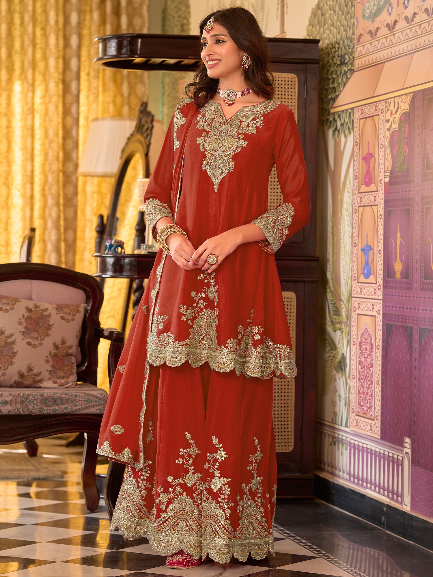 Length of Kurta: Above Knee | Shape: A-Line | Work/Pattern: Embroidered | Neck Line: Round Neck | Length: Above Knee | Style(Pants, Flared, Palazzo):Palazzos | Closure:Slip-On