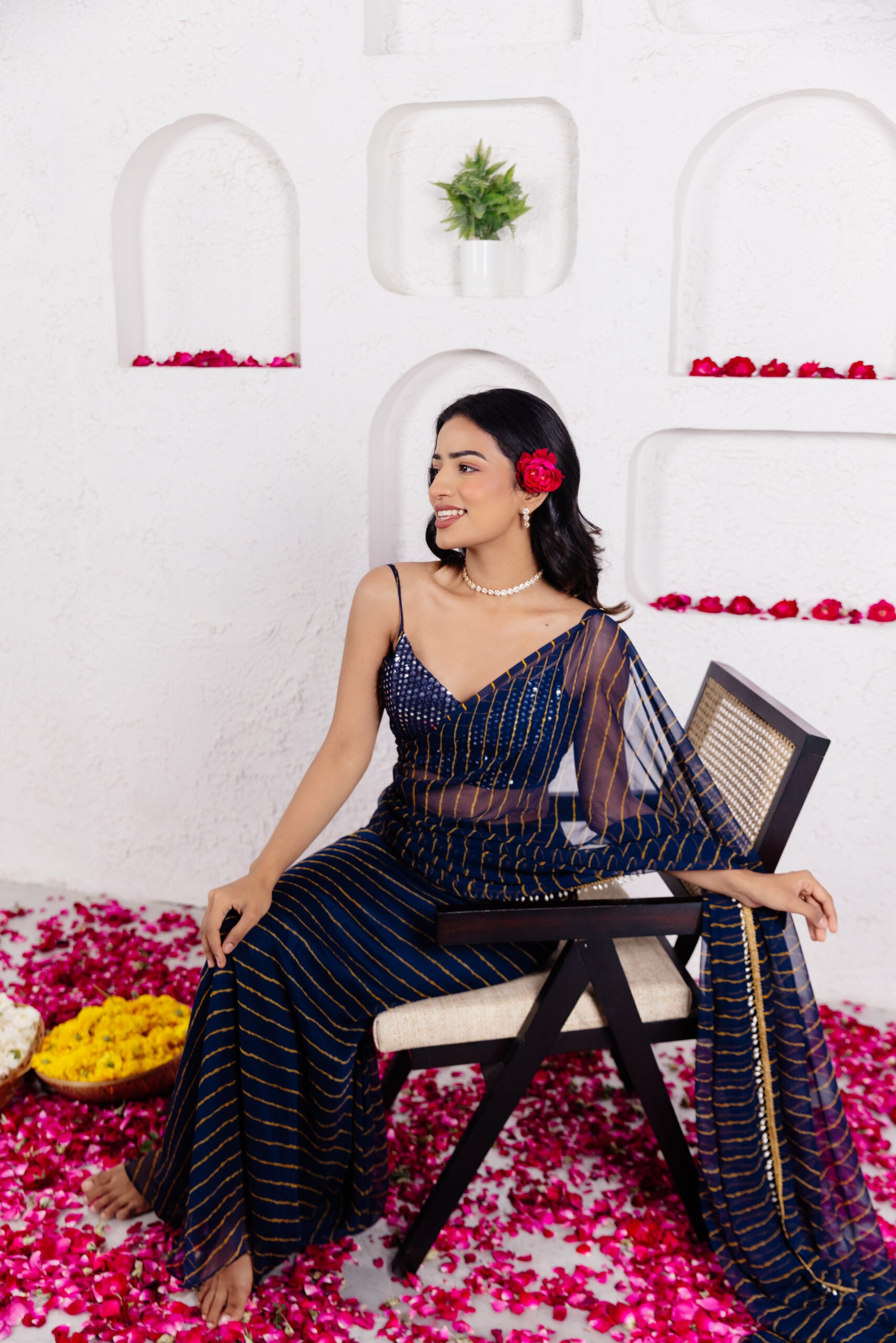 KAIRI MIDNIDHT BLUE LEHERIYA PREDRAPED SAREE