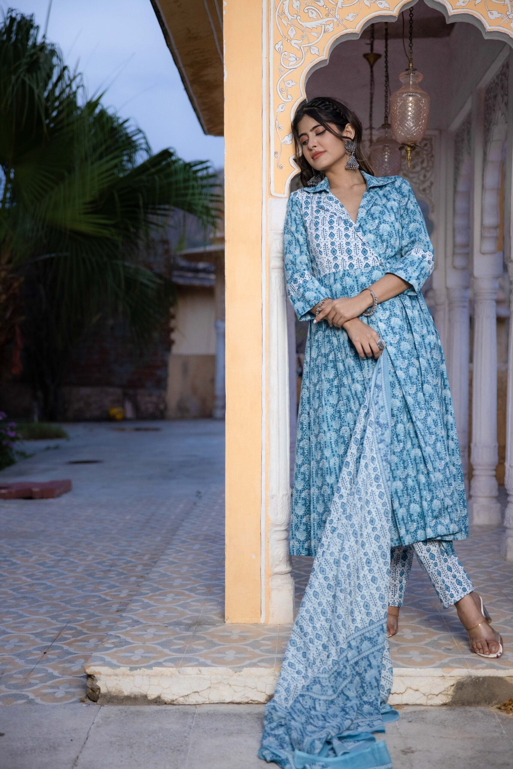 MEERAB COTTON FORMAL BLUE KURTA SET