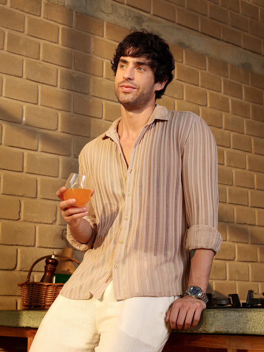 Make a bold statement with this Campus Sutra Shirt, designed for those who appreciate artistry and comfort. Crafted from smooth, lightweight Polyester-Blend, this shirt offers day-long comfort and a striking visual appeal. The Relaxed-Fit and Spread Collar ensure a polished look, while the Long Button-Cuff Sleeves and Curved hem add a touch of sophistication. Perfect for casual outings, club wear, or weekend get-togethers, this shirt blends style and functionality seamlessly. The Knitted fabric and Solid pattern create a unique aesthetic that sets you apart from the crowd. With its Button closure and unlined design, this shirt is easy to wear and maintain. Whether you're dressing up for a party or keeping it casual, this t-shirt is an ideal choice for modern men who value style and affordability. Add this versatile piece to your wardrobe and experience the perfect combination of comfort, durability, and trendsetting design. Strong, dynamic essence for your quirky personality. Campus Sutra showcases a stylish edit that will instantly upgrade your look. Charming looks and infinite comfort – be it stylish all-over prints or solid pastels, our clothes are designed to ensure that you can be at the top of your style game. Our vast range of jackets, t-shirts, trousers and much more are curated to be dependable and relaxing.!