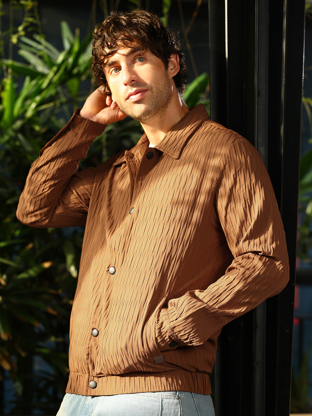 Make a bold statement with this Campus Sutra Jacket, designed for those who appreciate artistry and comfort. Crafted from smooth, lightweight Polyester-Blend, this Jacket offers day-long comfort and a striking visual appeal. The Regular-Fit and Point Collar ensure a polished look, while the Long Button-Cuff Sleeves and Stretch-Straight hem add a touch of sophistication. Perfect for casual outings, club wear, or weekend get-togethers, this Jacket blends style and functionality seamlessly. The Woven fabric and Solid pattern create a unique aesthetic that sets you apart from the crowd. With its Snap Button closure and comfort design, this Jacket is easy to wear and maintain. Whether you're dressing up for a party or keeping it casual, this jacket is an ideal choice for modern men who value style and affordability. Add this versatile piece to your wardrobe and experience the perfect combination of comfort, durability, and trendsetting design. Strong, dynamic essence for your quirky personality. Campus Sutra showcases a stylish edit that will instantly upgrade your look. Charming looks and infinite comfort – be it stylish all-over prints or solid pastels, our clothes are designed to ensure that you can be at the top of your style game. Our vast range of jackets, t-shirts, trousers and much more are curated to be dependable and relaxing.!