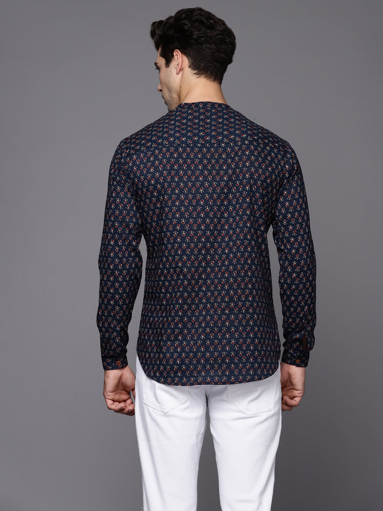 Indo Era Navy Blue Ethnic Motifs Cotton Straight Kurtas
